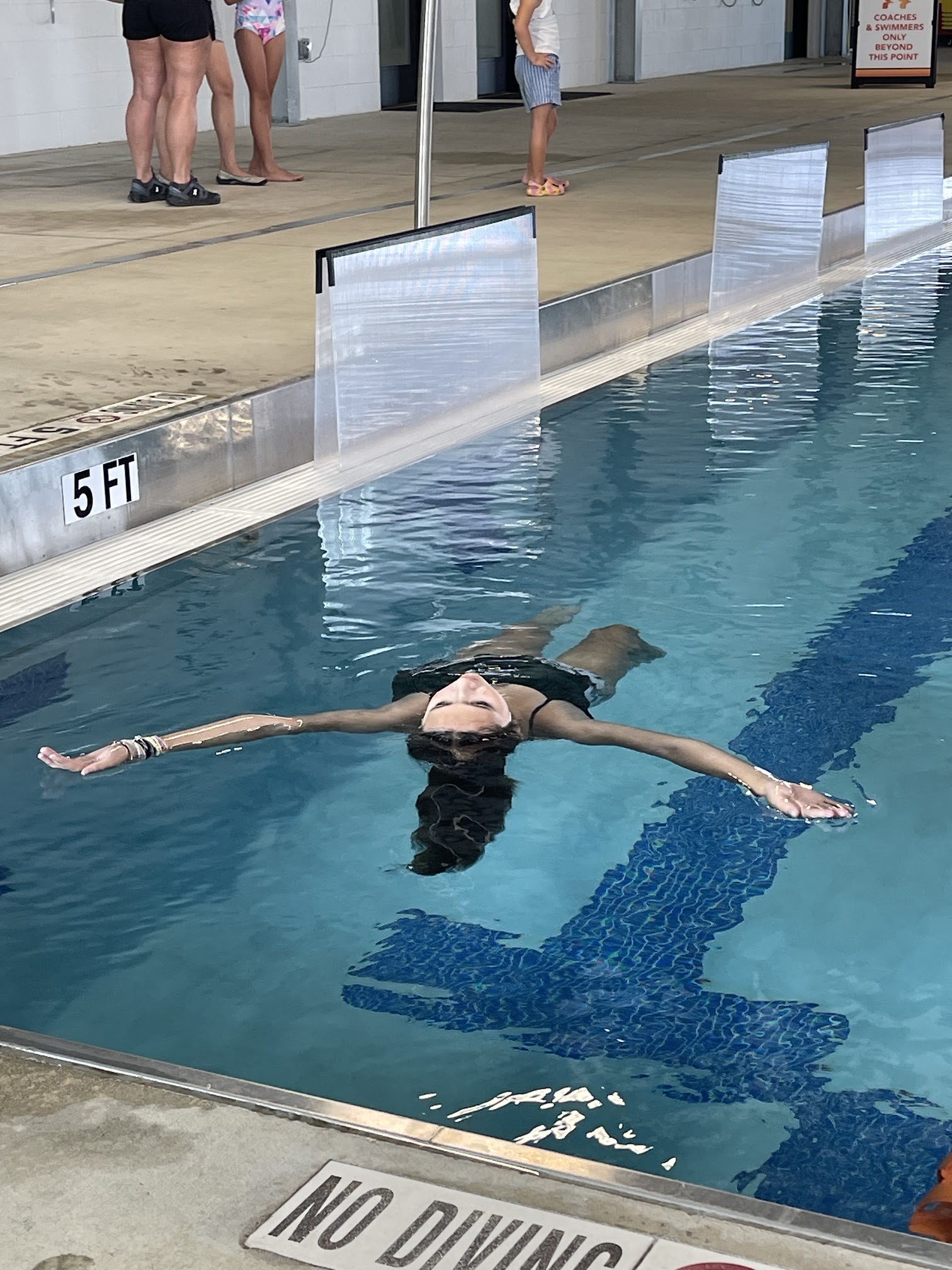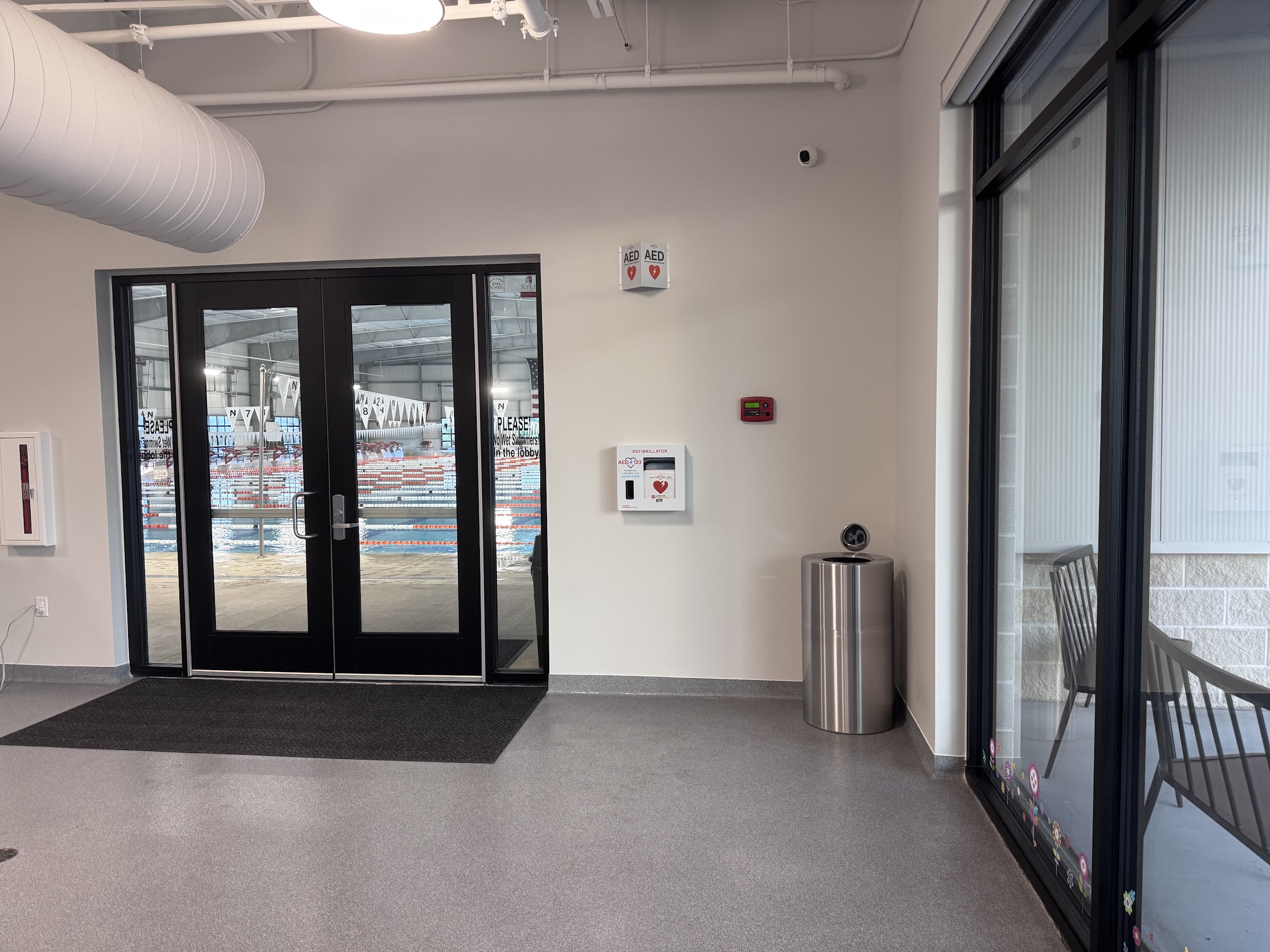 The facility features two main pools: a 25-yard pool maintained at a comfortable 84 degrees Fahrenheit, and a dedicated warm water teaching pool kept at 88 degrees Fahrenheit.