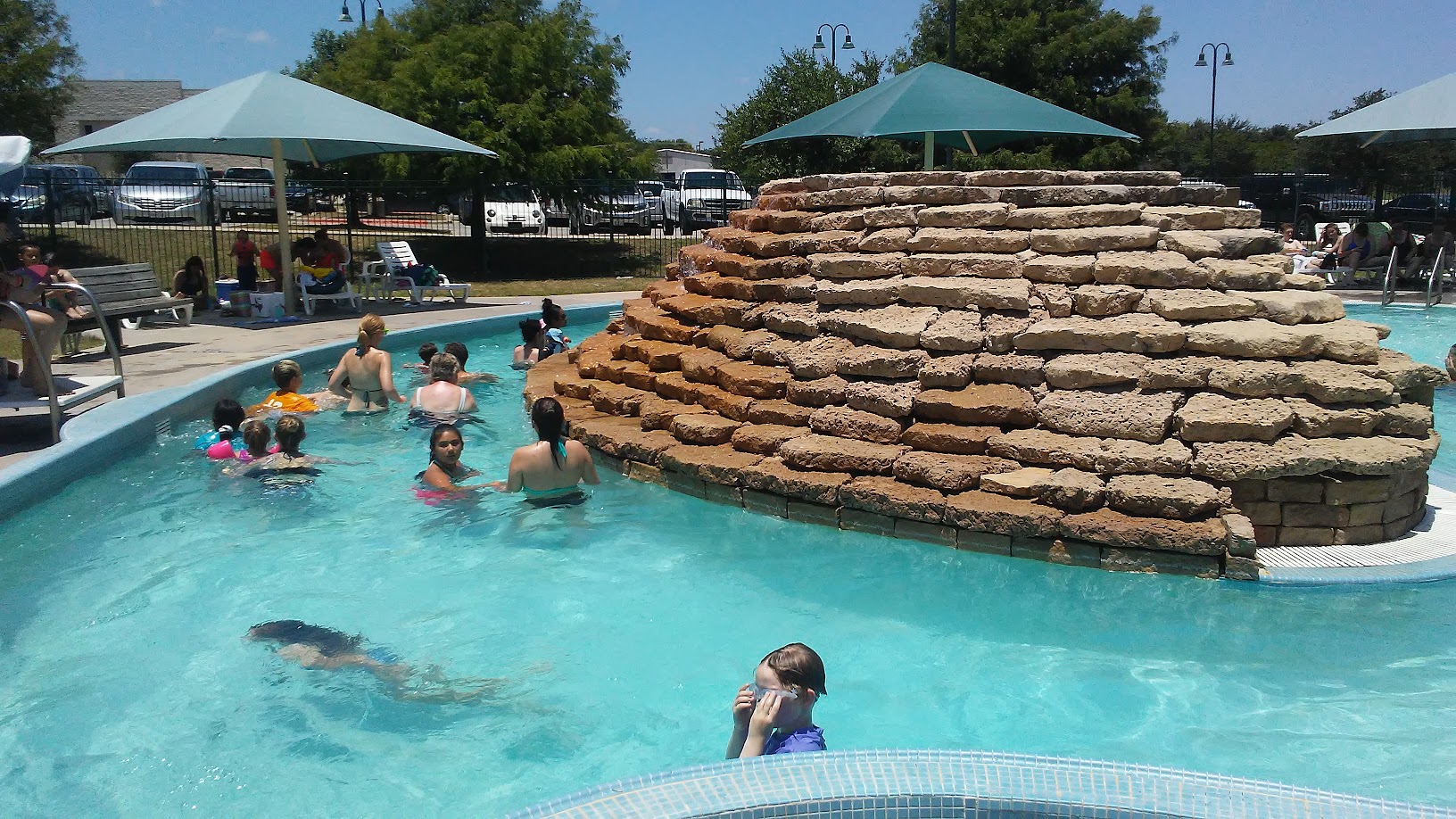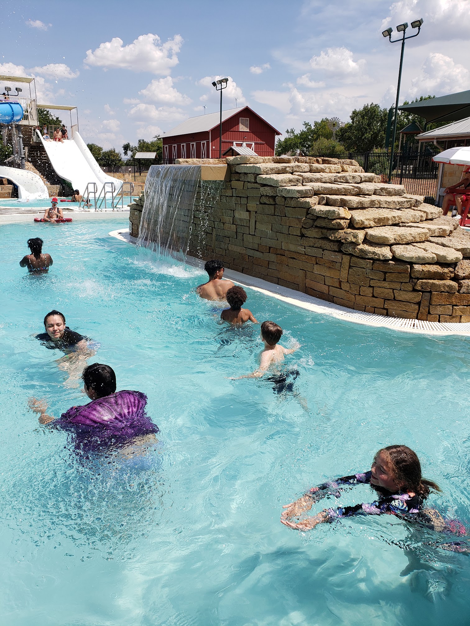 Very Friendly lifeguards. Beautiful area. Relaxing environment. Best of all cool, cool water on a hot Texas day!