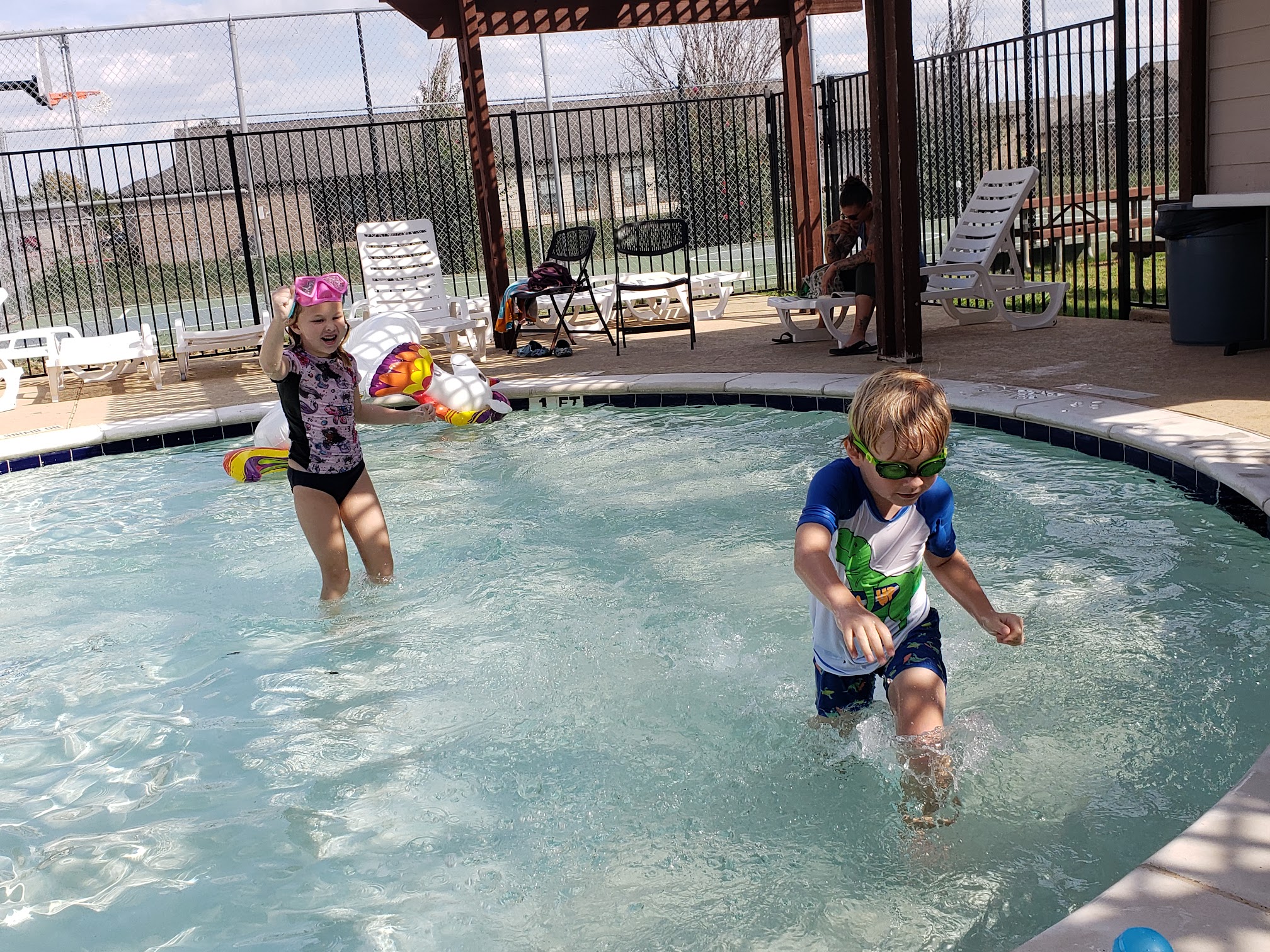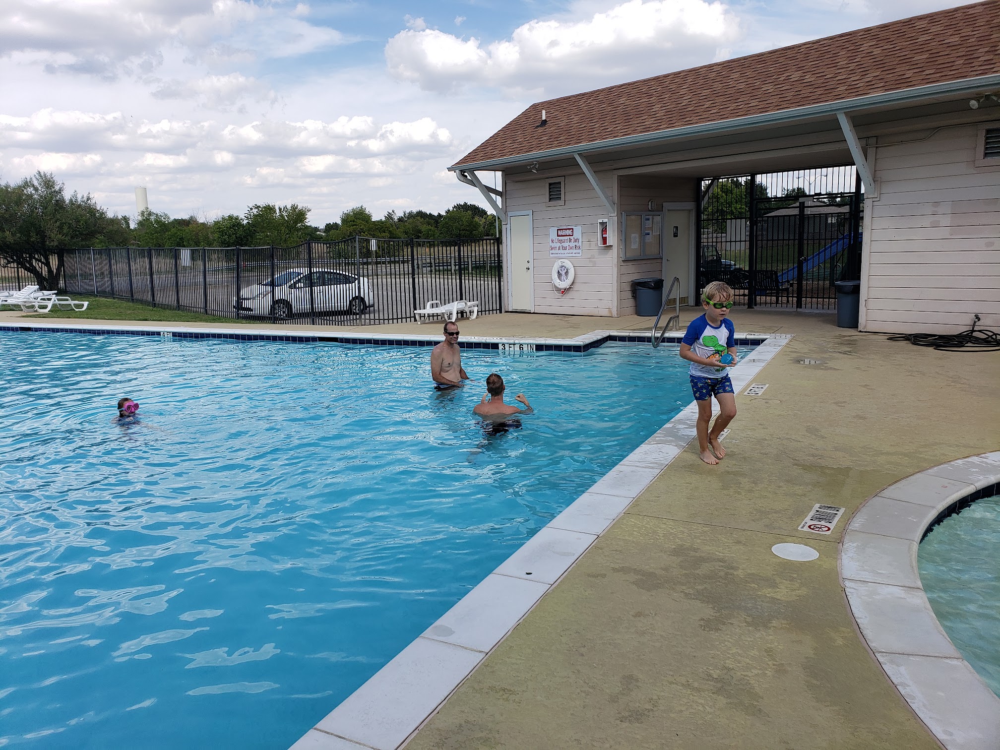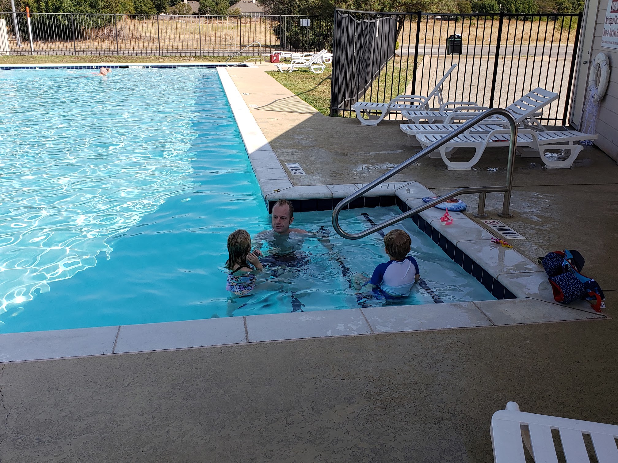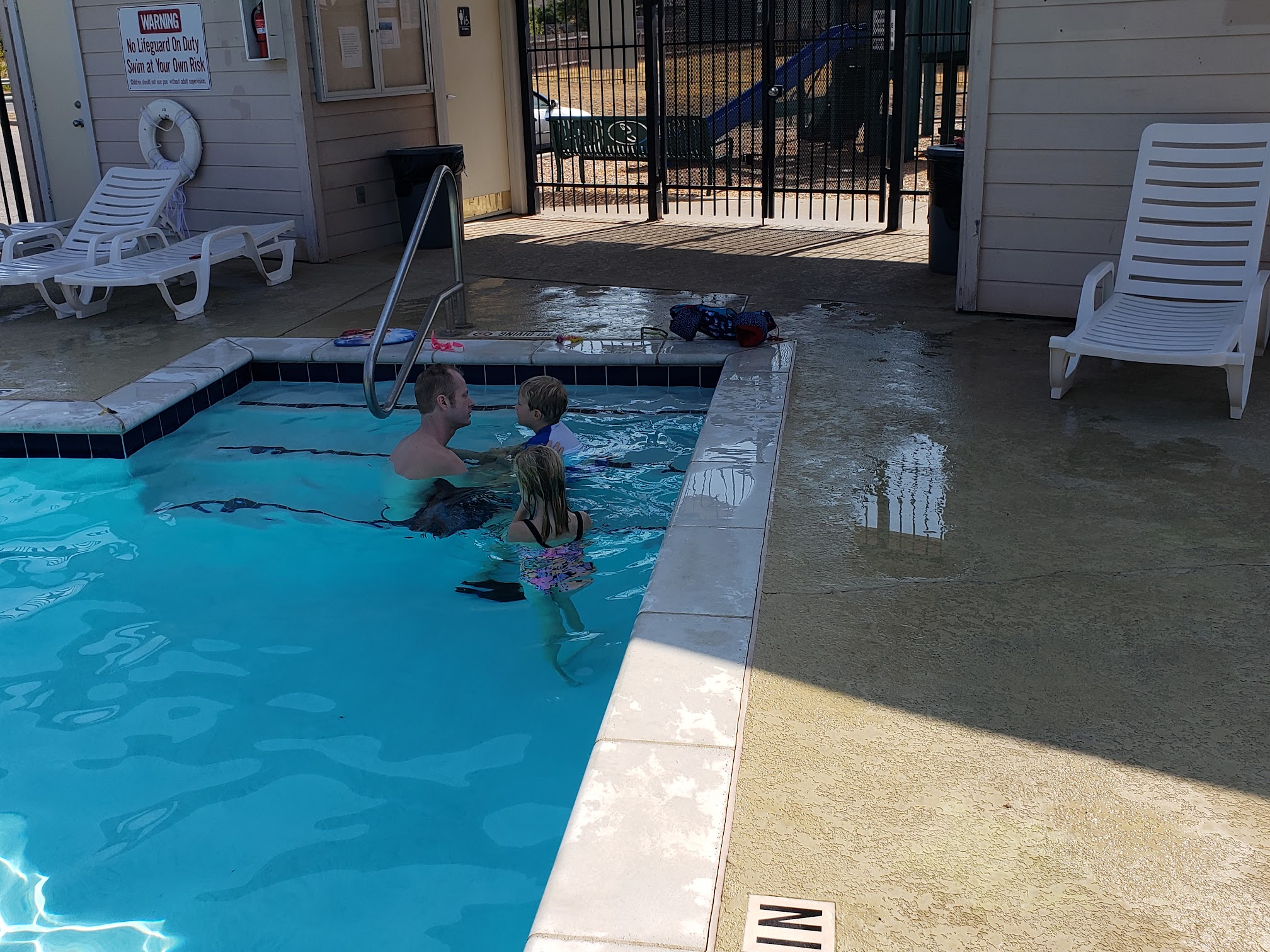 It's a nice neighborhood pool with the basics. No deep end or diving allowed. There are lounging chairs, garbage bins and bathrooms. (I've seen the bathrooms be pretty rough but they're not always neglected. I seldom visit them though.) Hopefully they'll keep the pool open for several more weeks!