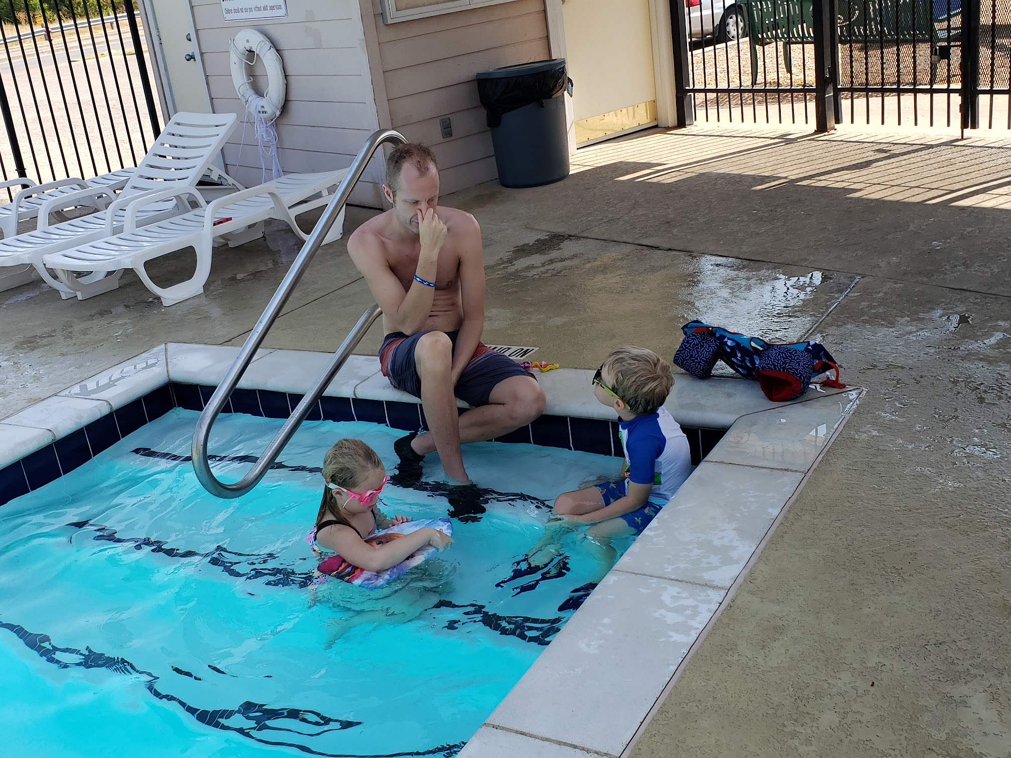I'm giving it 3 stars because there is no handicap availability at this pool. Like the Kitty pool, there's no handrail or anything to hold onto to get in or out. And it's a big step to get down into the keyboard for an and then getting out of the ragged. Regular pool is a little difficult as well. As there's only the panels in the middle. And it is a bit hard for a handicap persand I'm talking people who can walk, but hardly they wanna get in the pool, but they have a hard time getting back out, so I think that the pools like these should have more availability for handicaps to enter the pool and exit the pool. Without getting hurt or hurting themselves.