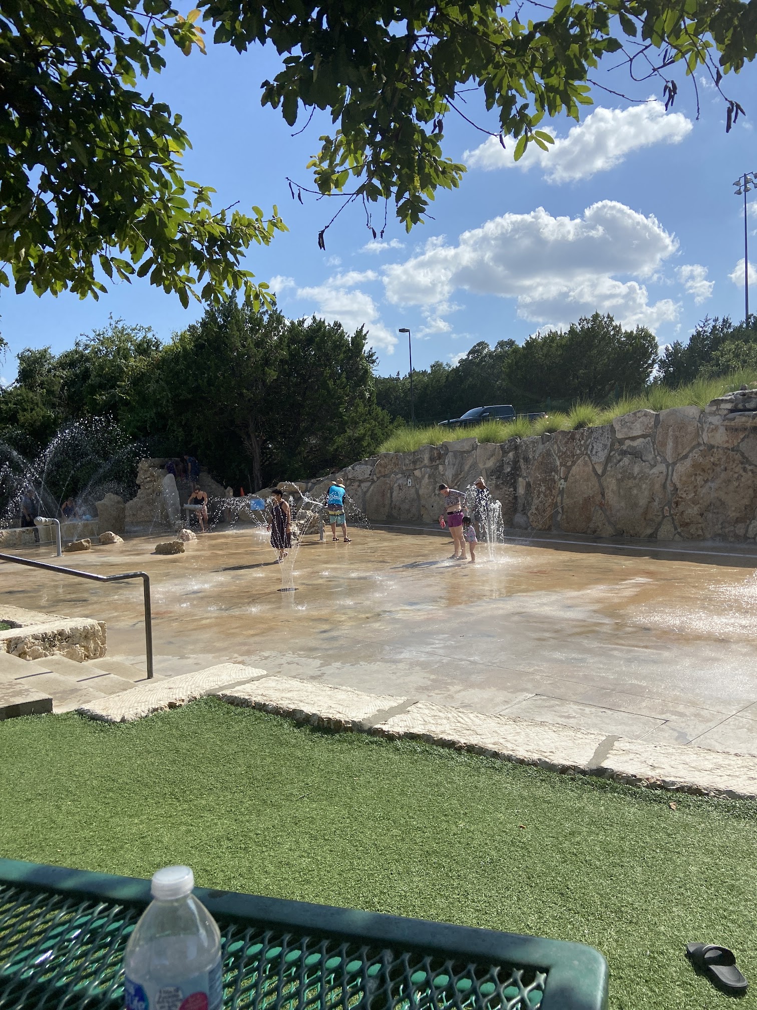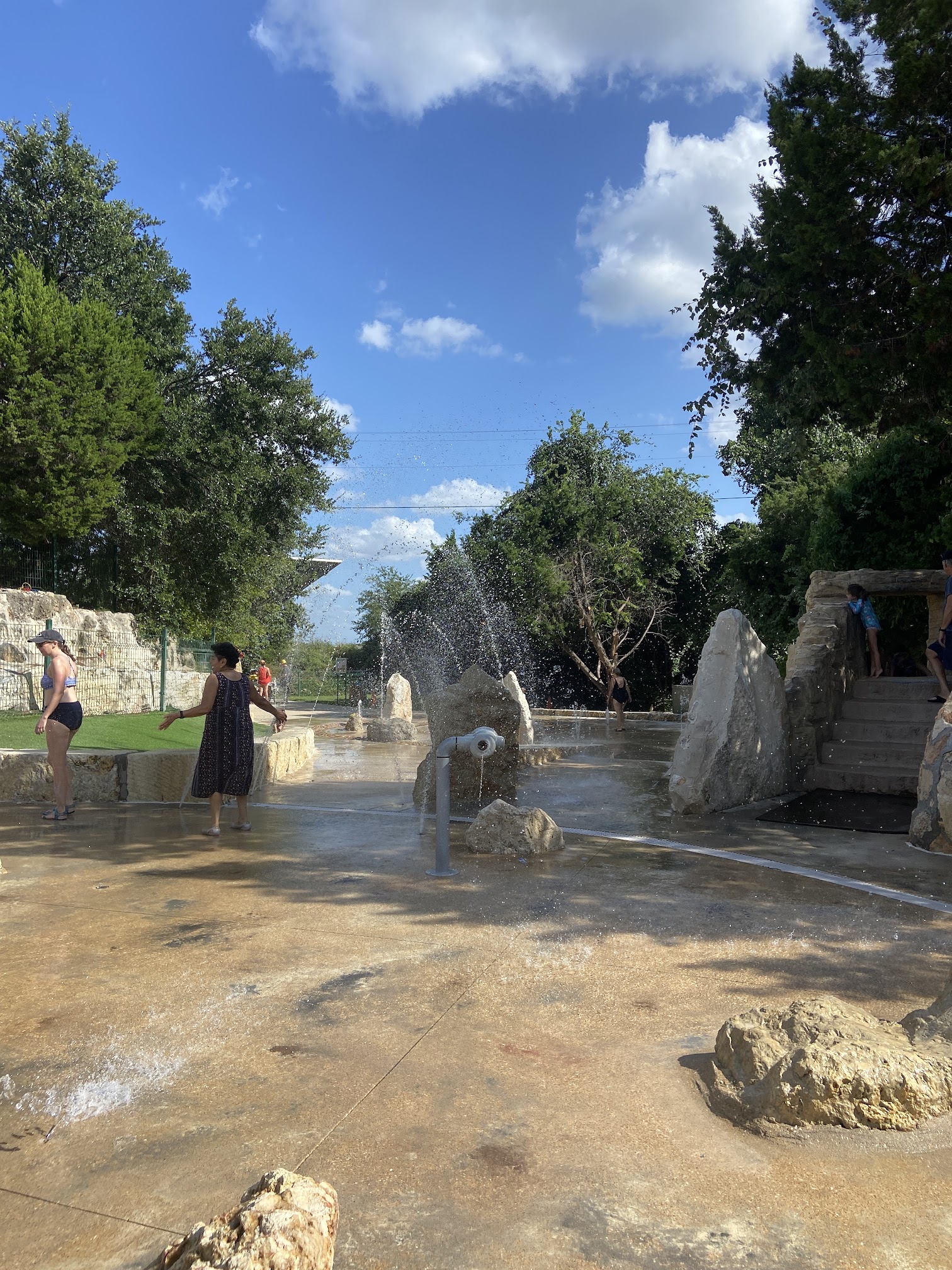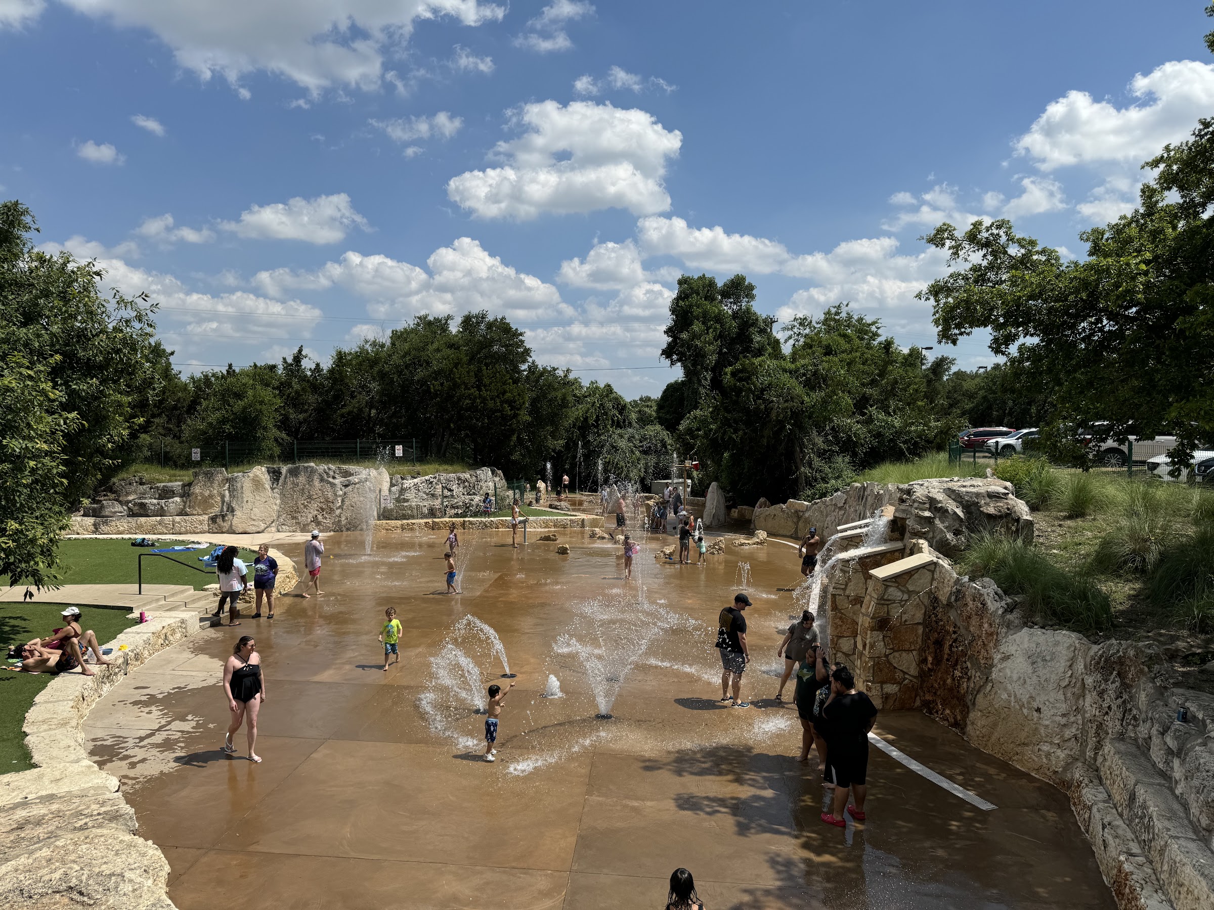 As a splash pad, the water is generally unheated and its temperature naturally varies with the ambient air conditions, offering a cool respite from the Texas heat.