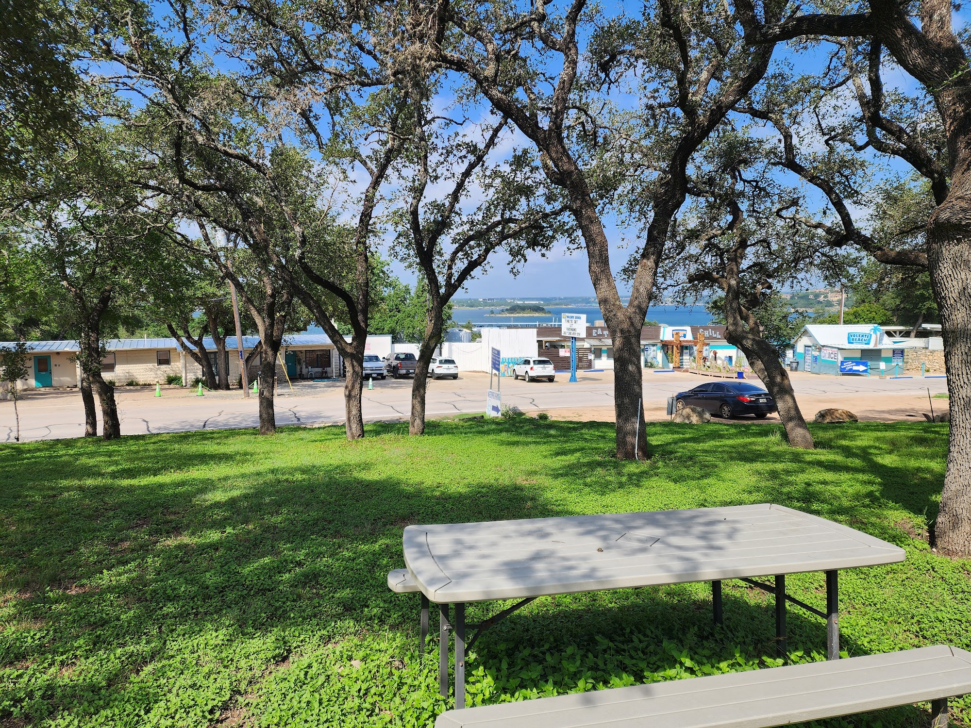Volente Beach Bungalows is a lakeside resort and water park situated on Lake Travis in Volente, TX. It offers a variety of water attractions including slides and a sandy beach, alongside bungalows for overnight lodging. The destination also features a private marina and a beach club atmosphere, making it a popular spot for family recreation and relaxation.