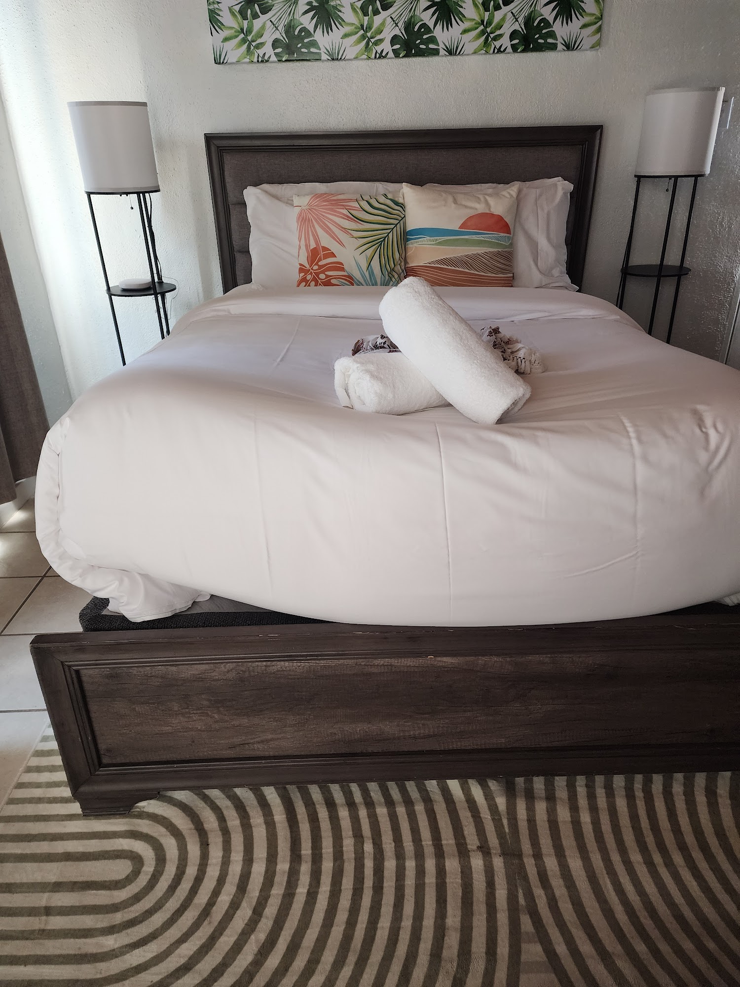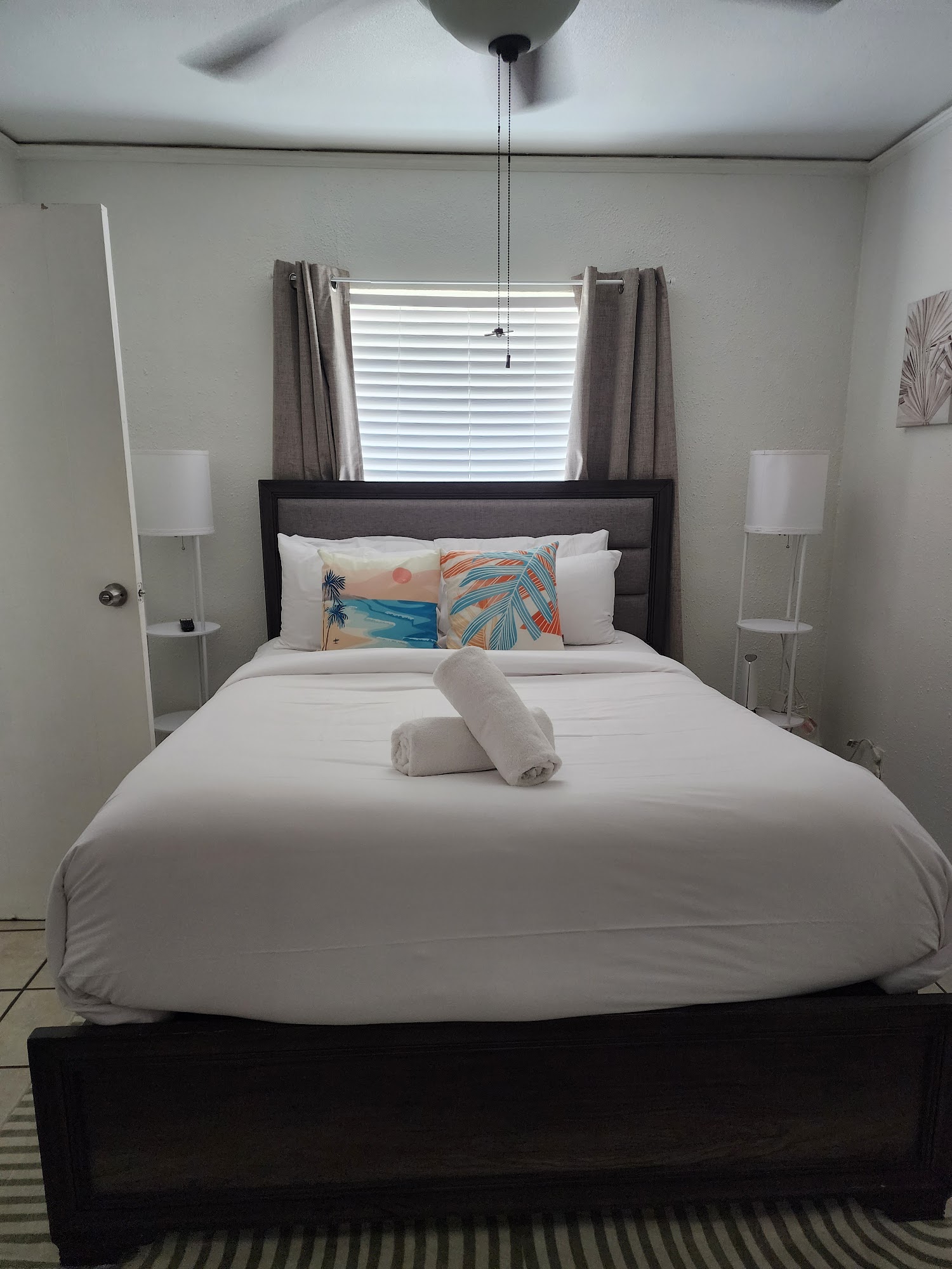 Super cute, super clean. The door keypad was super easy to remember and use. I'm a barefoot walker when at home so soo nice to walk around on nice clean floors. The rugs had stains but not bad. The kitchen has everything but the food. Lots of dishes. The bathroom separates the main room and the small bedroom. It very nice little bathroom. Clean! Lots of towels provided. T V was very easy to use, the host has already signed you into most streaming sites so play and go. Very nice beds with lots of pillow choices. When leaving everything is provided for you to clean up after yourself. Only had two complaints. But they matter. #1 The main room is hot during the day, the Texas sun hitting the lakeside windows. The AC can only do so much, they do provide fans to help push the air, and the smaller bedroom cooled much quicker. #2 Booked because it was across from the waterpark and restaurant. With free access to the waterpark, but when we went to utilize it they were hosting last last-minute booked private event that the hotel didn't know about. I would recommend and would probably stay again.