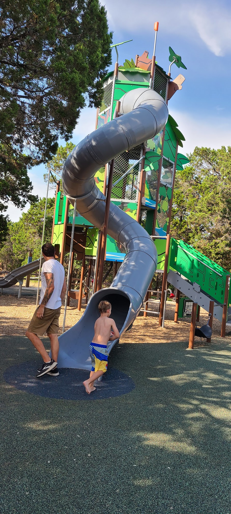 Loved this pool and playground, only thing I would say is that some of the rules for the deep end are very strict. Why does everyone have to get out of the pool for 1 person to do a pencil dive ? No idea , but im not in charge lol the pool atmosphere overall is great tho and the lifeguards are still very nice and awesome :)