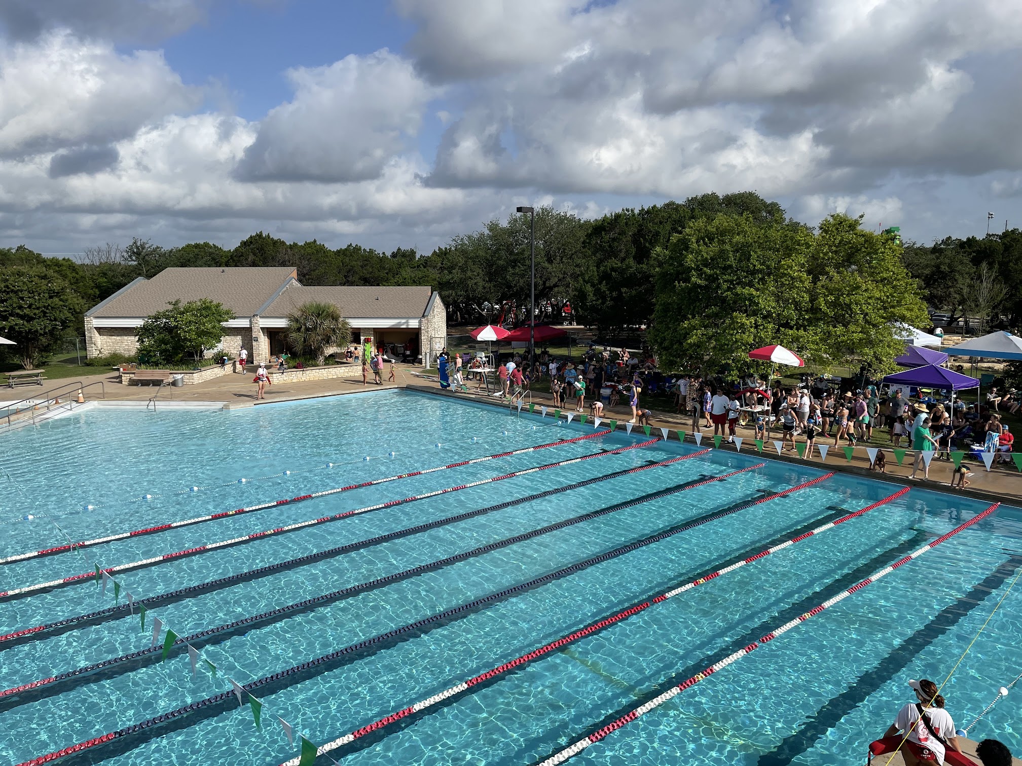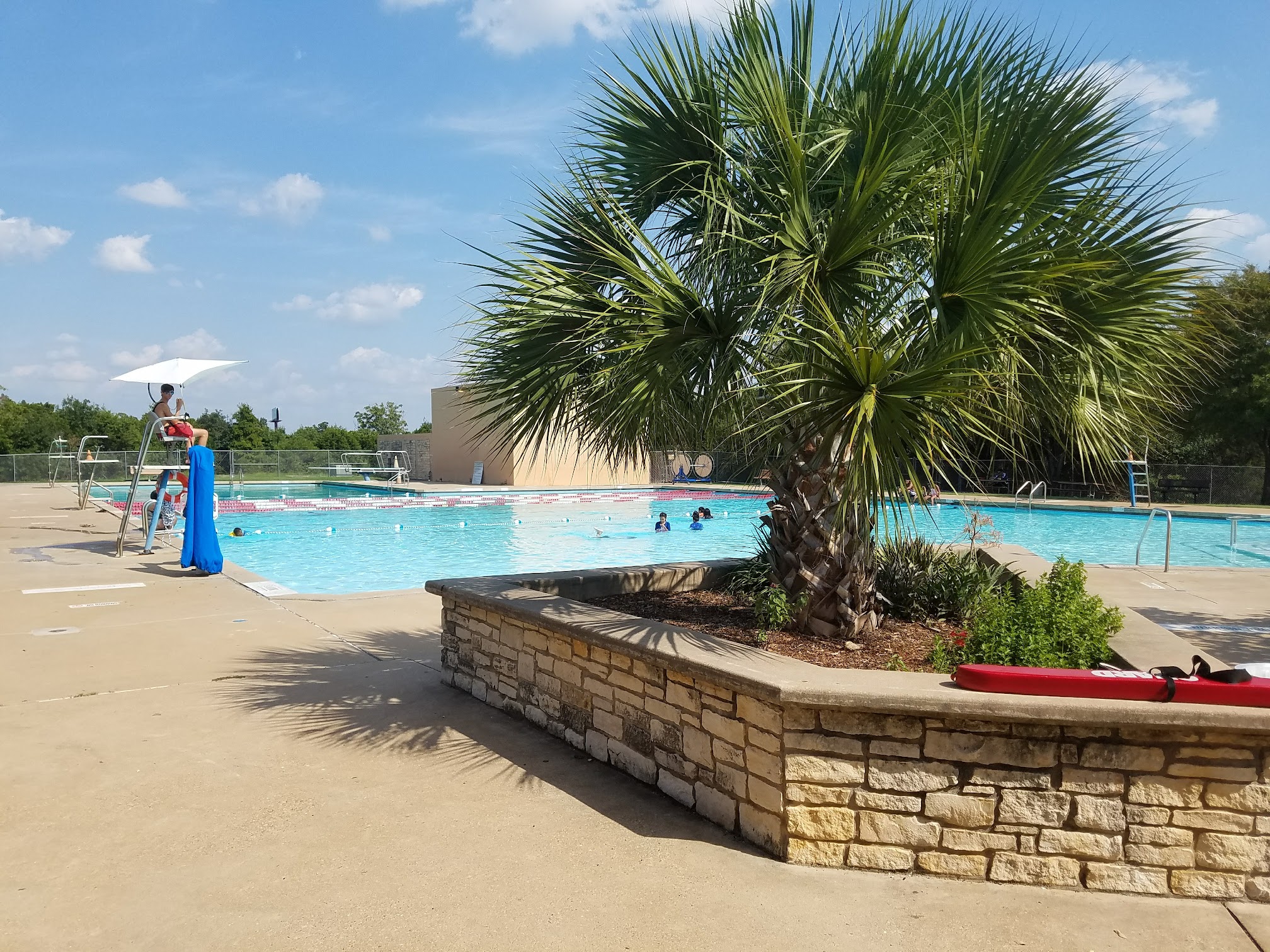 Roomy! When you and your family want room to play and swim, you'll have it. The diving board can bring a crowd, but it moves fast. The lifeguards are on their job. I appreciate the 5-minute intervals where they take turns checking the bottom of the pool. Come cool off! To note (and really the only awful thing about this location): Entry fees are cash only! There is no kiosk to make your payments before entering the pool.