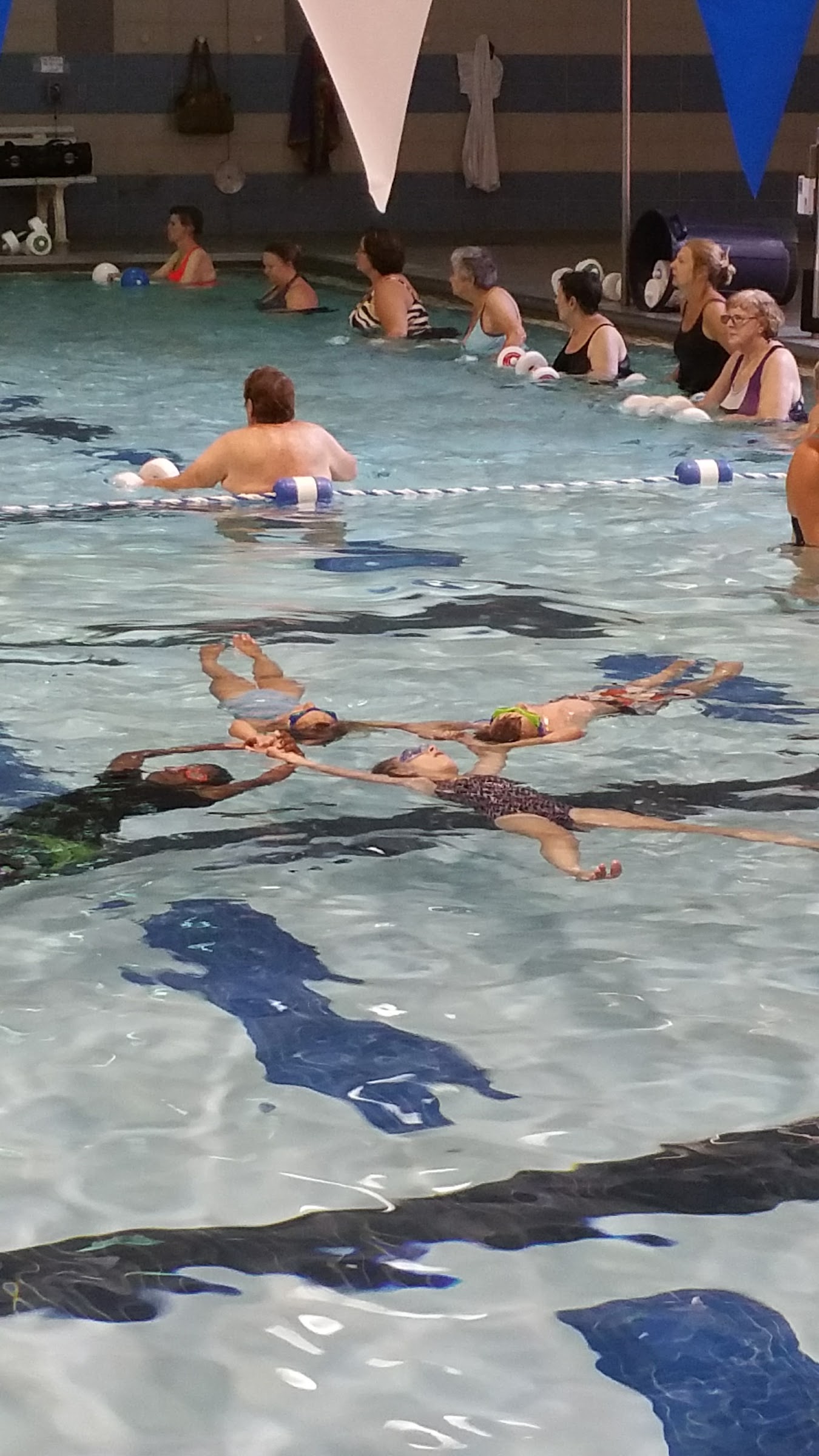 This place is great for swimmers of all levels. There is a shallow, accessible pool connected to the larger pool, allowing folks who are less mobile to enter and choose between the « leisure » area or the lap area (with swim lanes) just beyond it. The folks who work there and the visitors are friendly and kind. The leisure area and at least part of the lap area nearest it are shallow enough to do pool walking and aerobics—the water is chest-high then shoulder high.