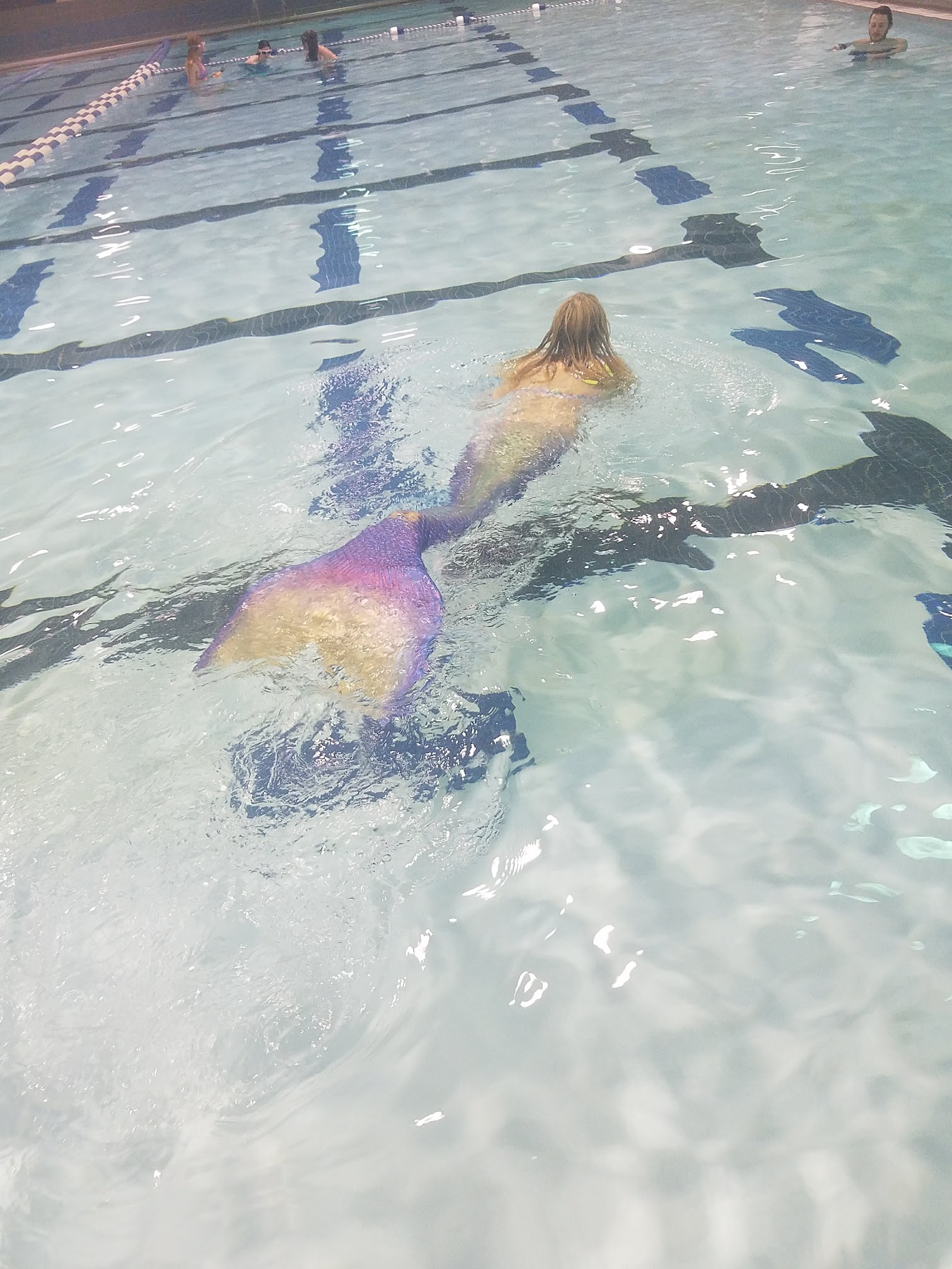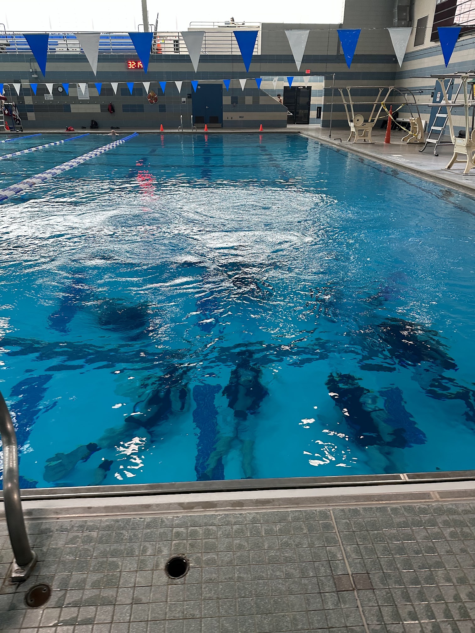 The pool was really nice. Lifeguards were on duty. There were several people swimming in the lanes, and there were several classes being taught. The instructors were very patient with the kids. We brought three different bus loads. The locker rooms were clean.