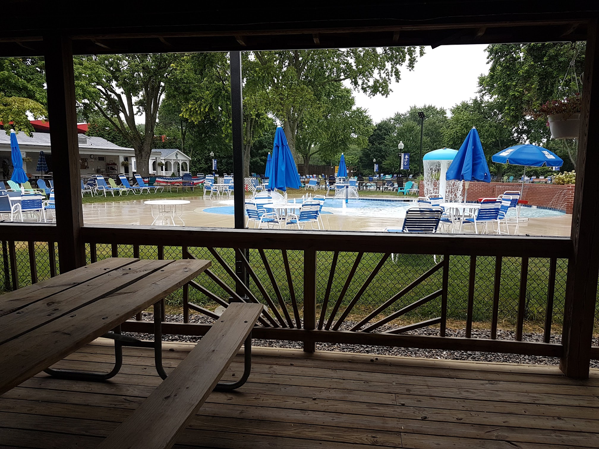 Swim club with a pool and grills, where membership is required.