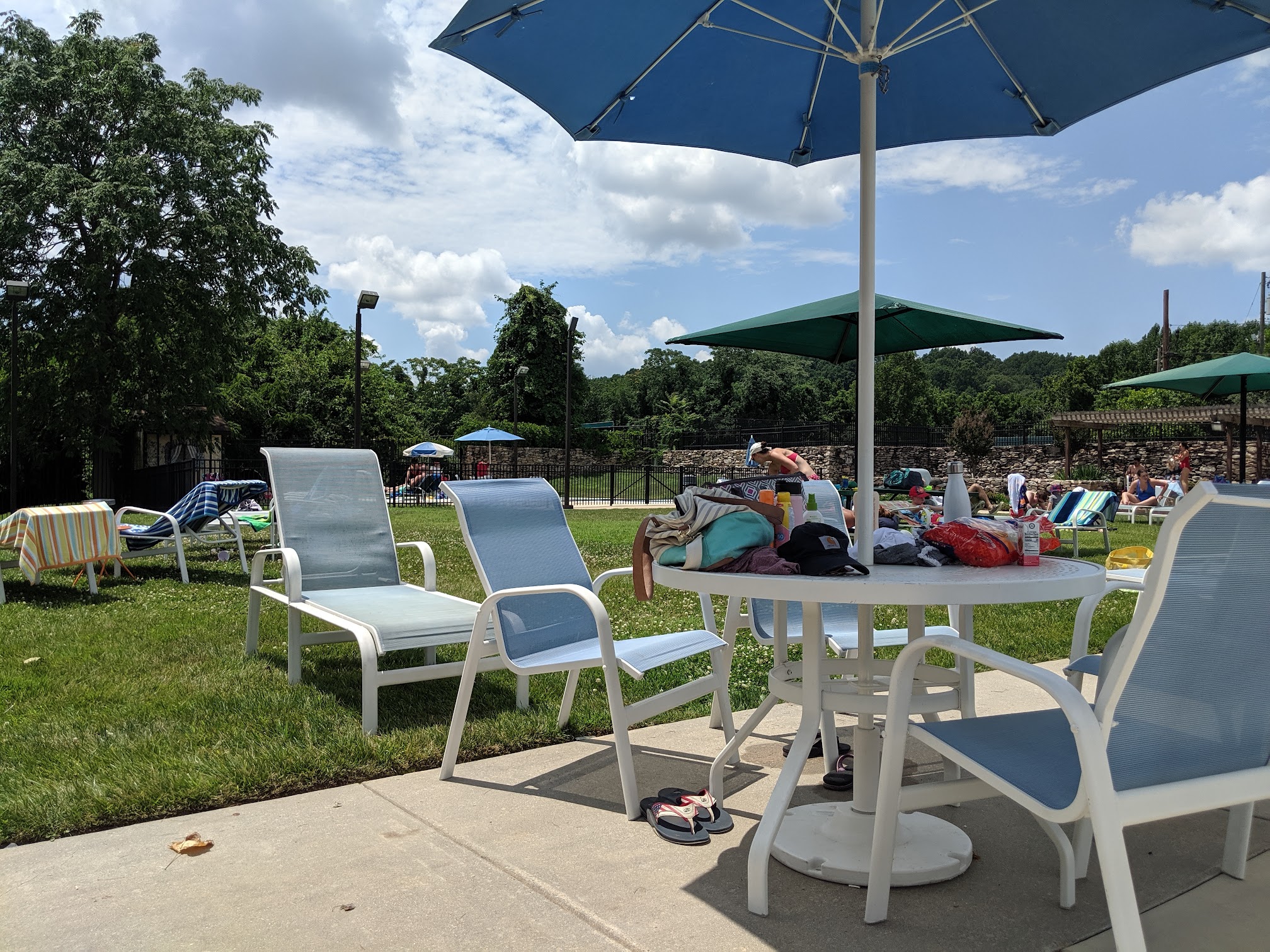 Clean water, slide, and snacks. Came with a family that are members and paid $5 for a guest pass. The water is clean without crazy amounts of chlorine. There are plenty of lifeguards around and also a little slide. The only downside is the minimal seating and lack of umbrellas. You have to bring your own shade. Please add umbrellas :)
