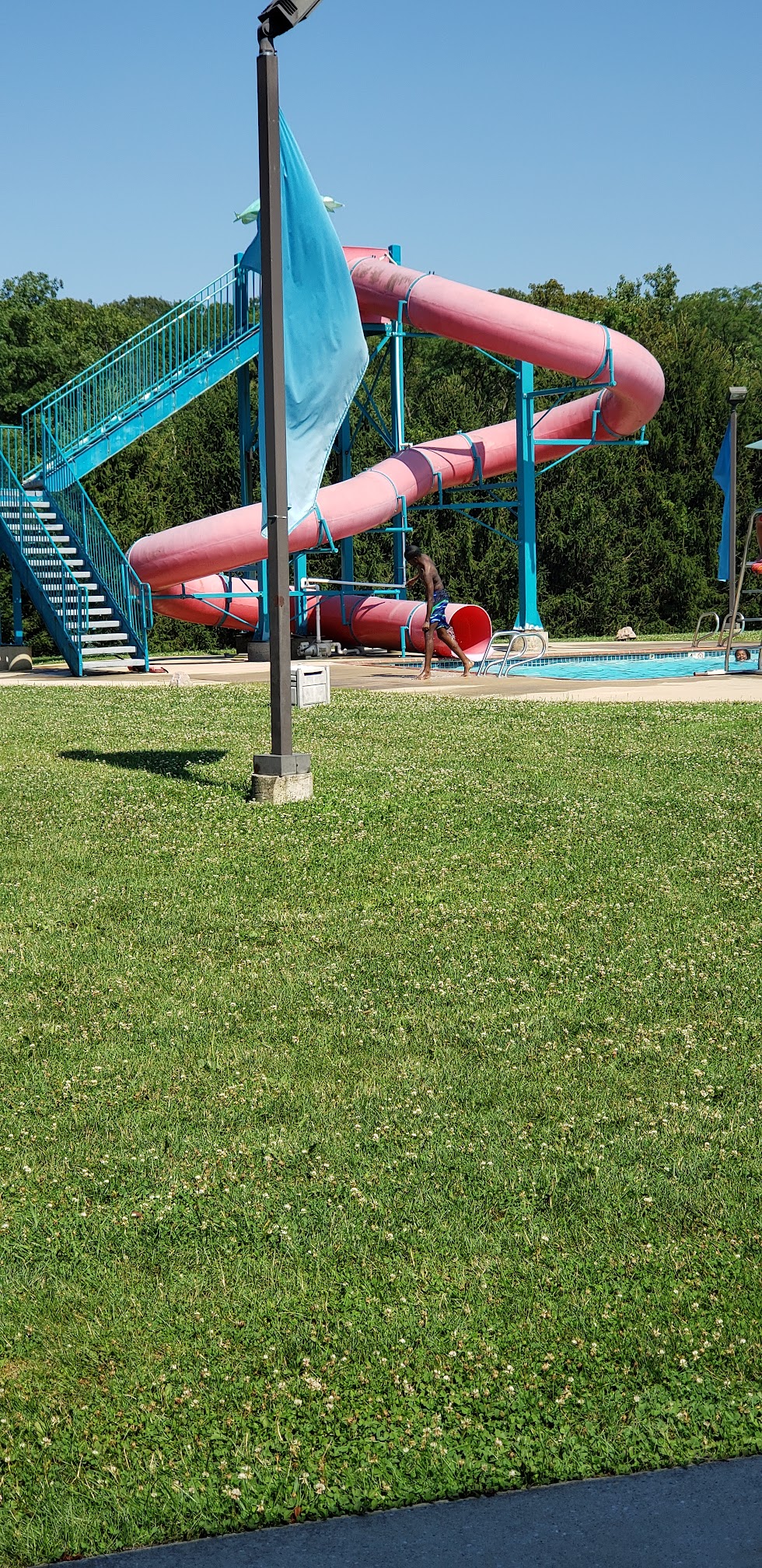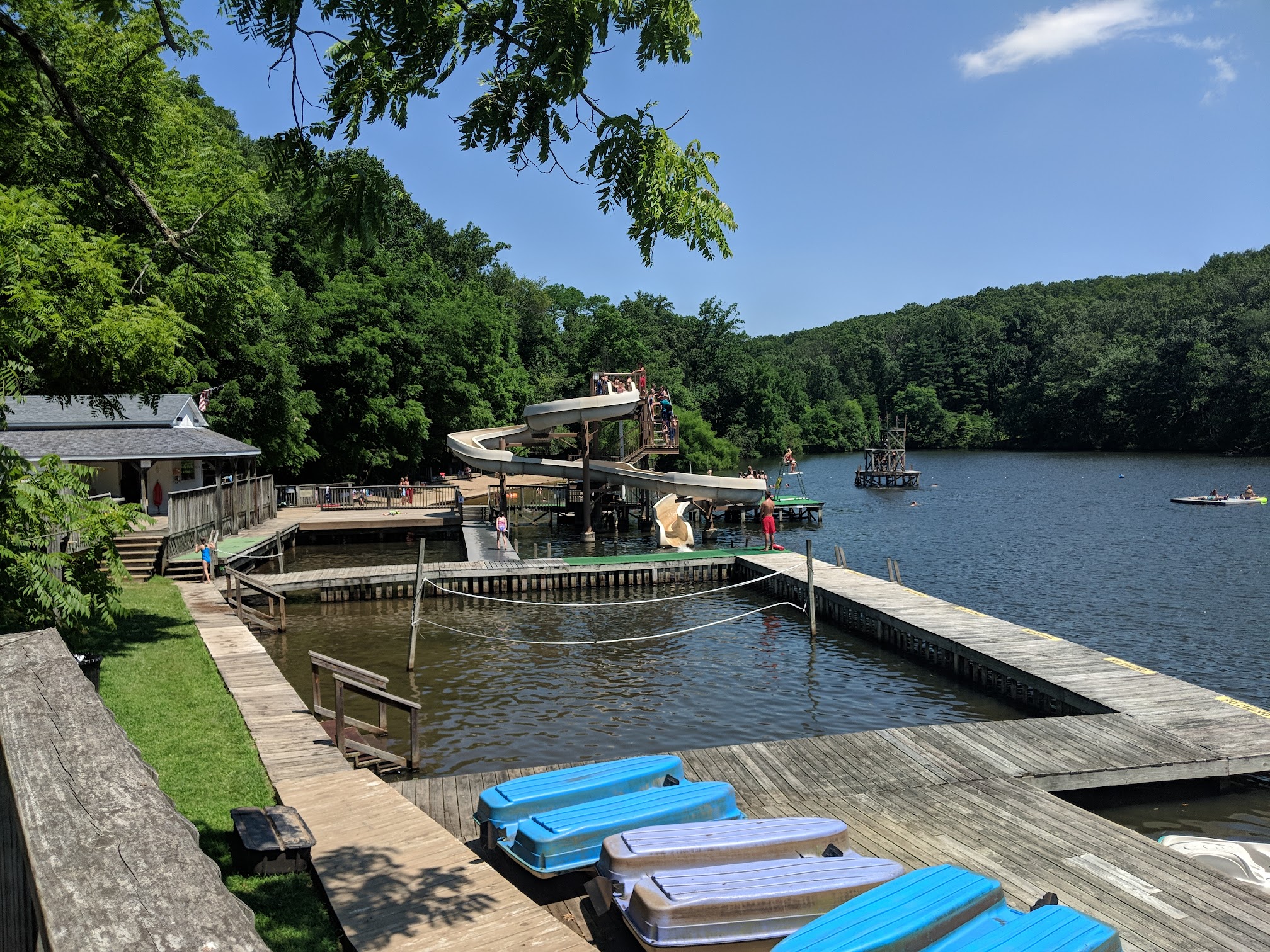 Casual and clean family-friendly destination featuring slides, high dives and a lake.