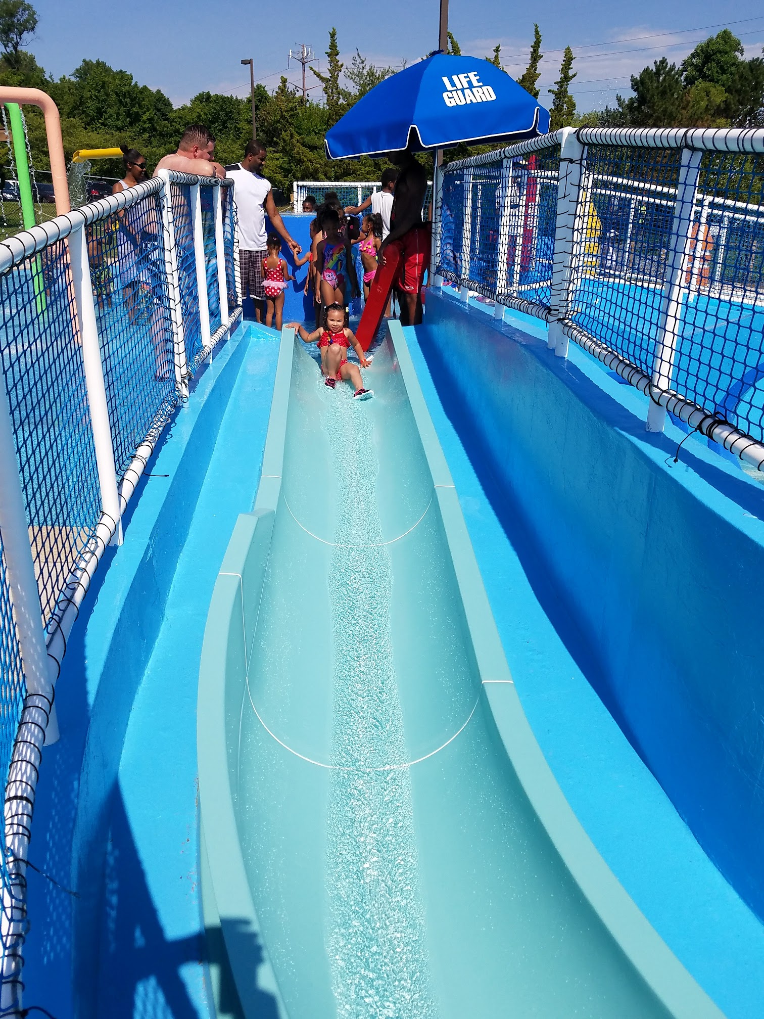 Its a great place to take children. Like 6 and under. Basically anyone 4 feet andnunder. Compared to the other PG county splash parks this one has the largest section for babies. The water goes knee deep on a 5'5" person and is warmer than the big kid pool (only goes to 3'5")