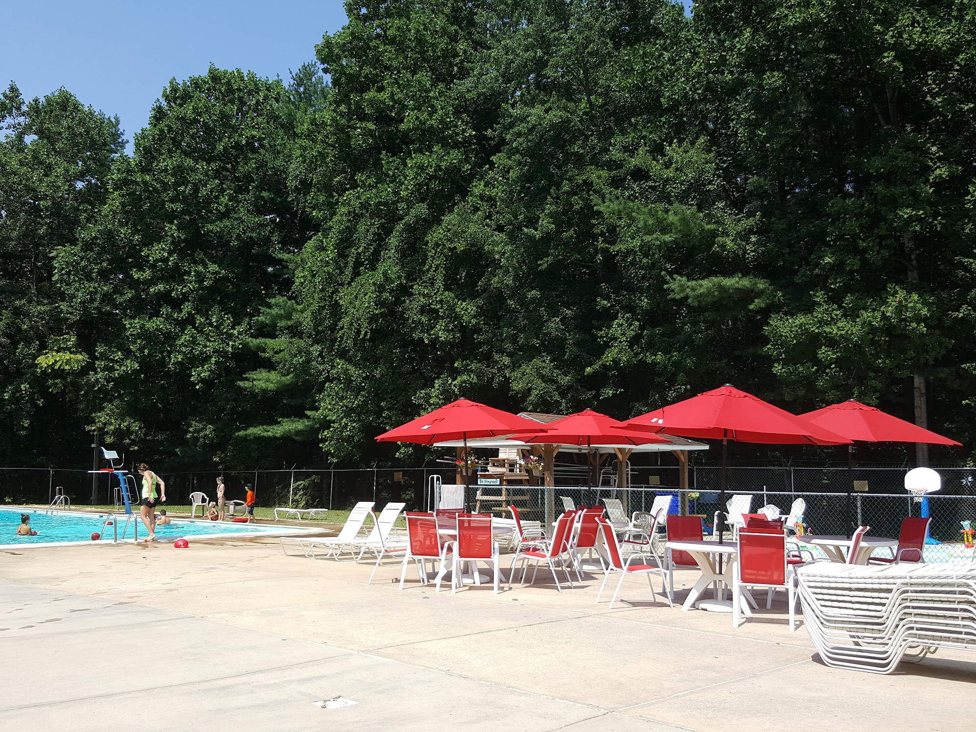 An excellent free pool in the area! The water is clean and there's plenty of room to swim including a twelve foot zone with diving board and a mini waterside. The area is surrounded by trees and nature which makes it look very special nice and the snacks are very reasonably priced. Candy is one dollar and popcorn is two dollars.