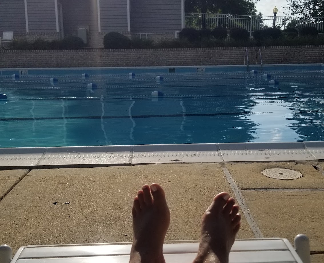 I spend my afternoons at the lap pool. It’s wonderful and quiet and typically no kids! It’s a dream.