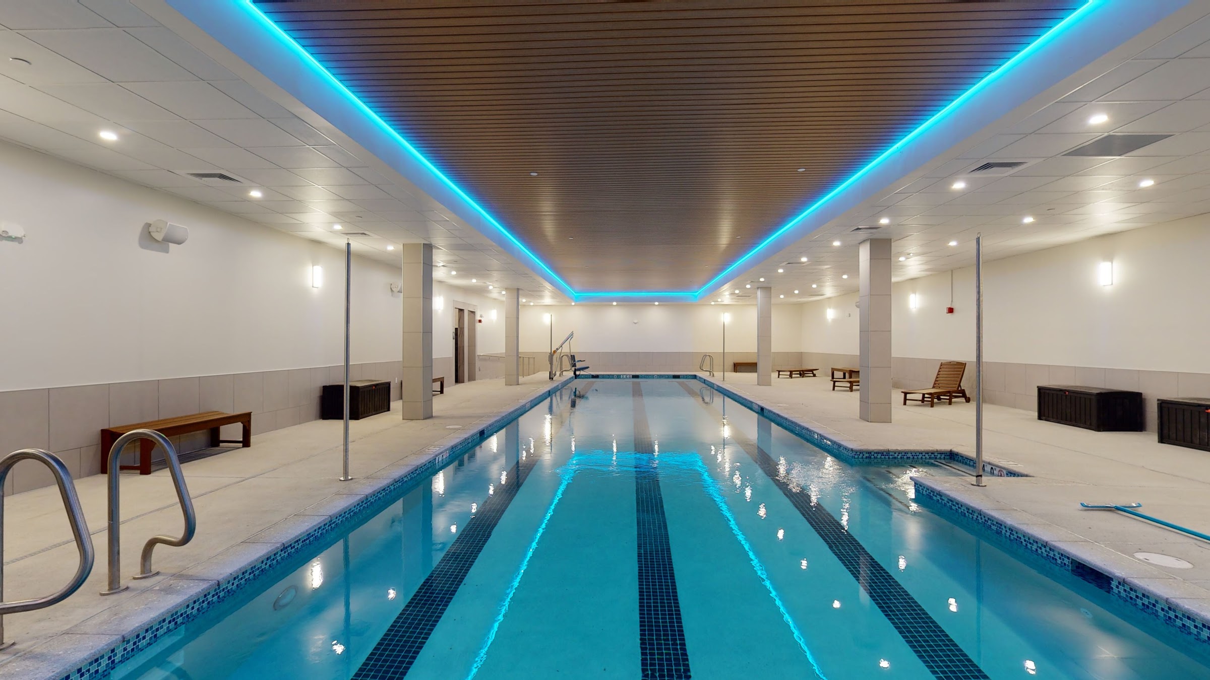State-of-the-art fitness center featuring a pool, hot tub and sauna as well as massage chairs.