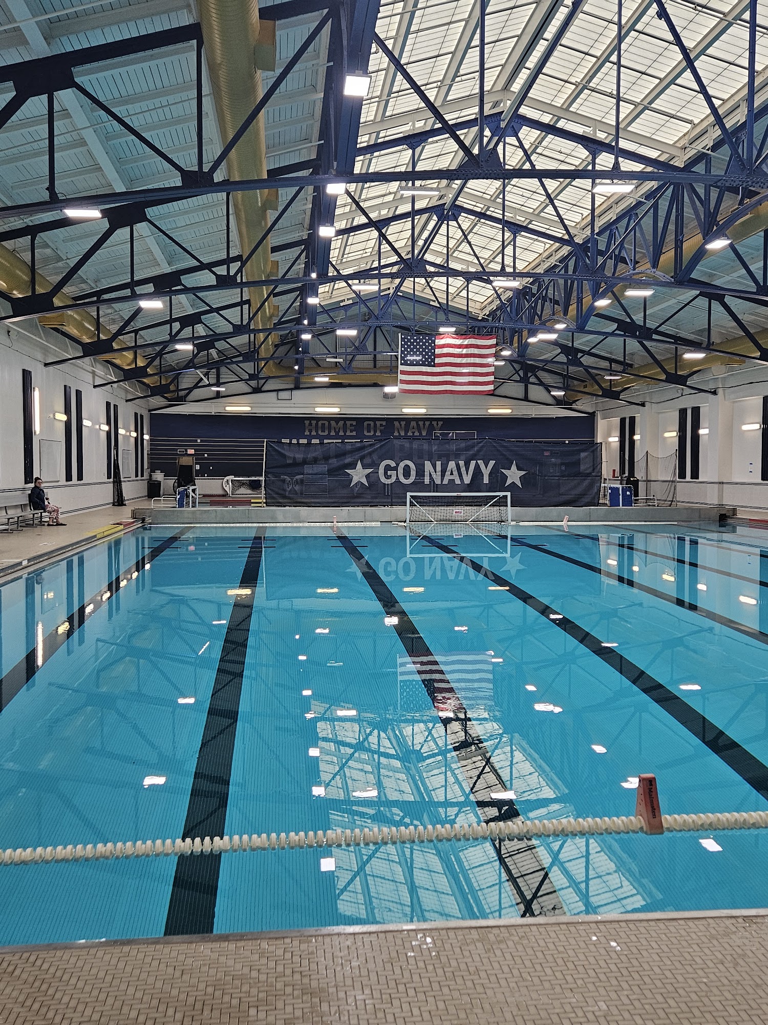 Enjoyed the intrasquad competition this morning between the 4 Navy Water Polo teams. Coaches Popp & Nicolao very engaged and working hard! The facility has benefited from a few esthetic improvements as well.