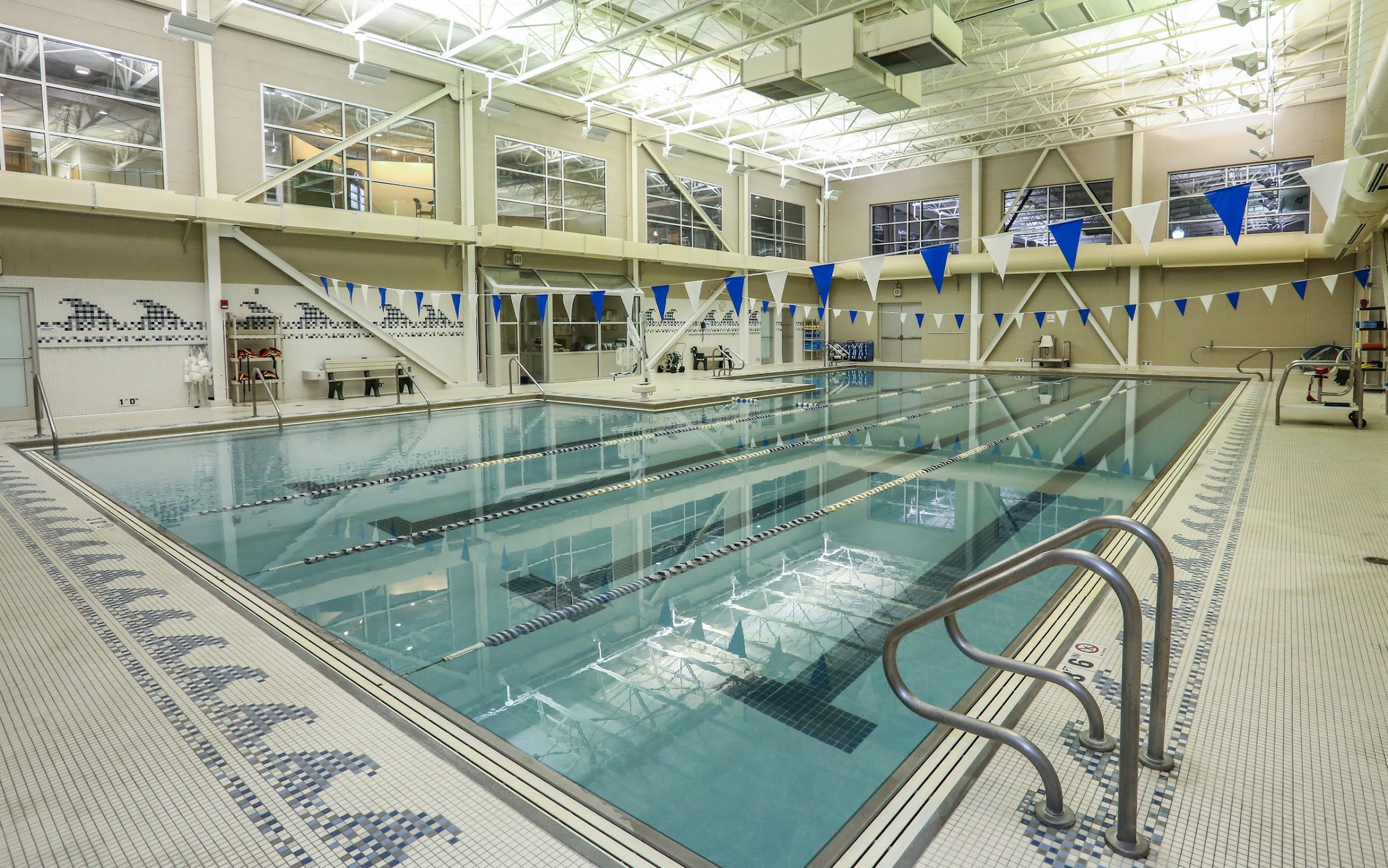Community center offering fitness classes, pools, a rock wall, and basketball courts, plus family rec rooms.
