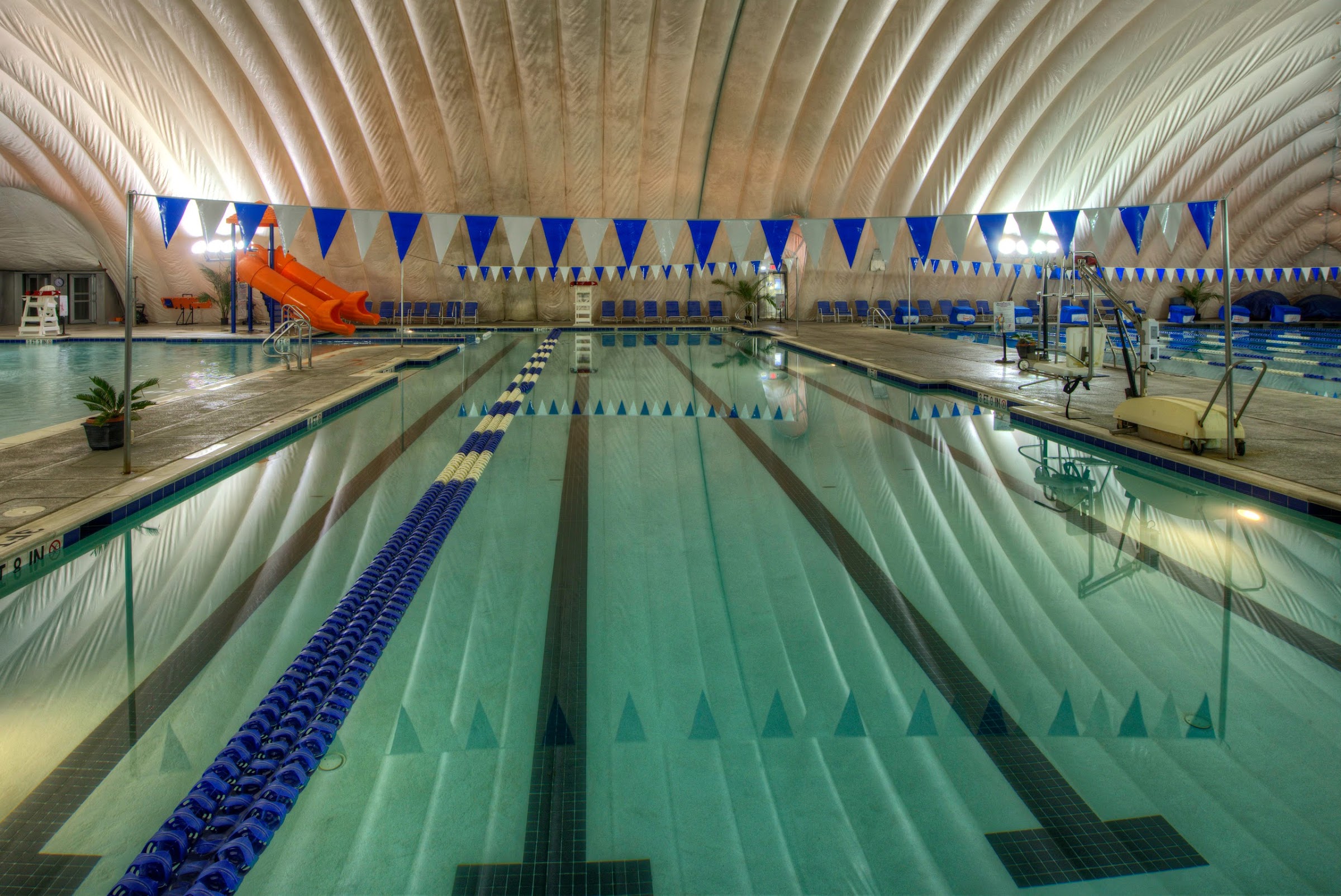 The facility includes a heated indoor lap pool, typically maintained in the range of 79-82°F (26-28°C) for comfortable swimming. Additionally, there is a dedicated warm water therapy pool, which is kept at a significantly higher temperature, often around 88-92°F (31-33°C), to support relaxation, rehabilitation, and gentle exercises.