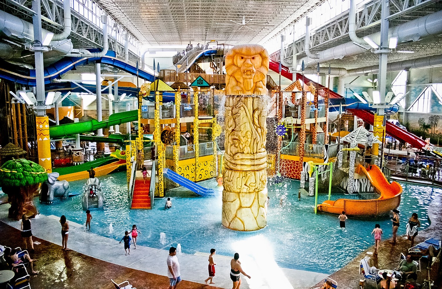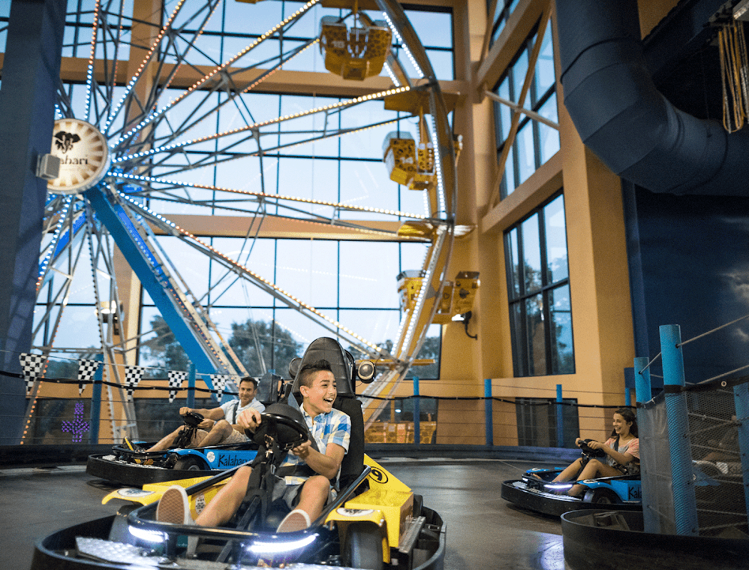 Kalahari Resorts & Conventions in Wisconsin Dells is a sprawling, African-themed resort featuring one of America's largest indoor waterparks, a seasonal outdoor waterpark, a massive convention center, a variety of dining options, a spa, and the Tom Foolerys Adventure Park. Located at 1305 Kalahari Dr, Baraboo, WI, it's a premier family-friendly destination known for its extensive entertainment and amenities.