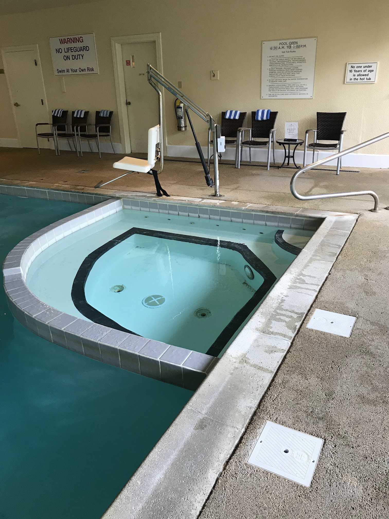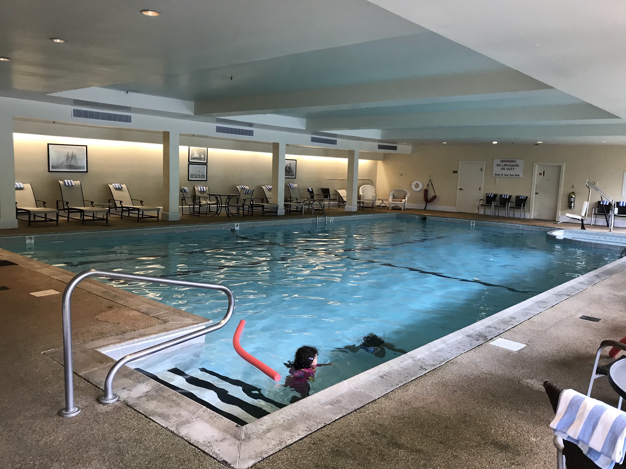 85 degree inside pool at Ocean Edge resort. Open year round. Large enough to accommodate most days and has a small hot tub.