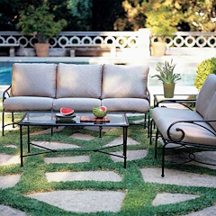 Furniture refinishing and cushioning outfit for decks, patios and poolsides.