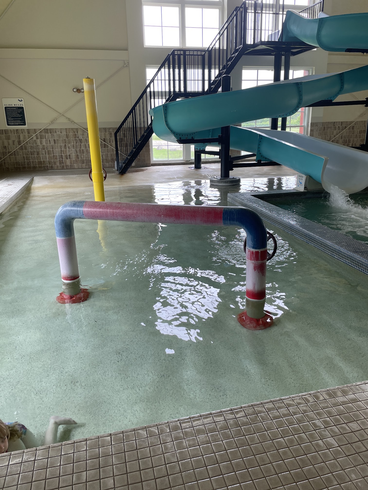 Very expensive considering none of the splash/sprinkler features work. (The slide was functional). Had to pay for myself and my infant when we were only spectating. Came because I needed an activity for my 5 yr old. $45 total. I had seen pictures of the kids’ pool area, but didn’t realize the sprinkler features would be broken. Doubt I would come again. If you are a member or a lap swimmer, then it seems it would be a decent spot.