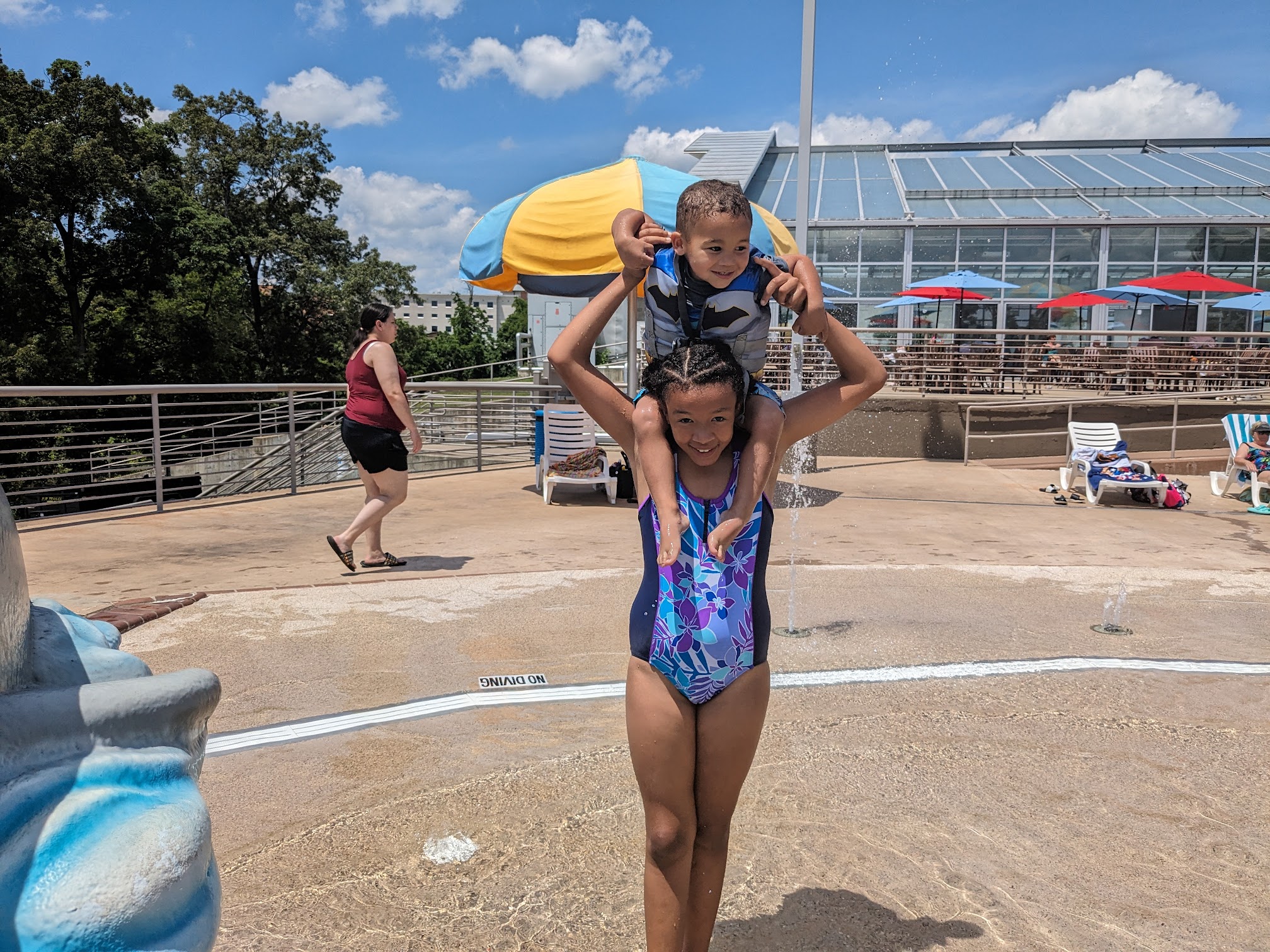 Wow! What a large water park this city should be proud of! From what I saw, it has a very impressive indoor and outdoor pools.. I also saw several slides in the outdoor section. What is great is there's a kiddie splash pad in the indoor pool area also. First time I've seen that. I'm not sure about the cost to use this facility as we were there for a swim meet. If you are in the area, check it out any time of the year.
