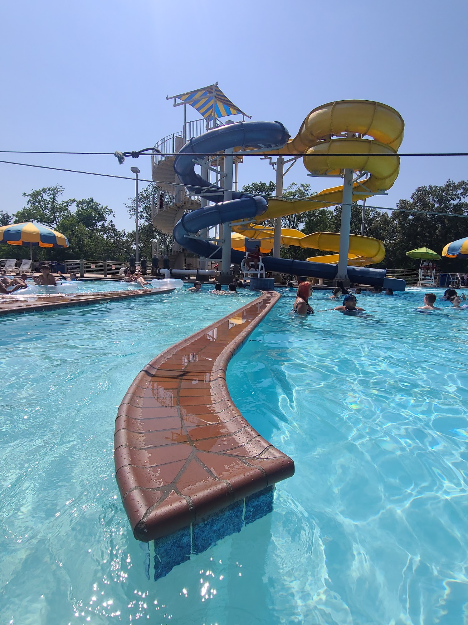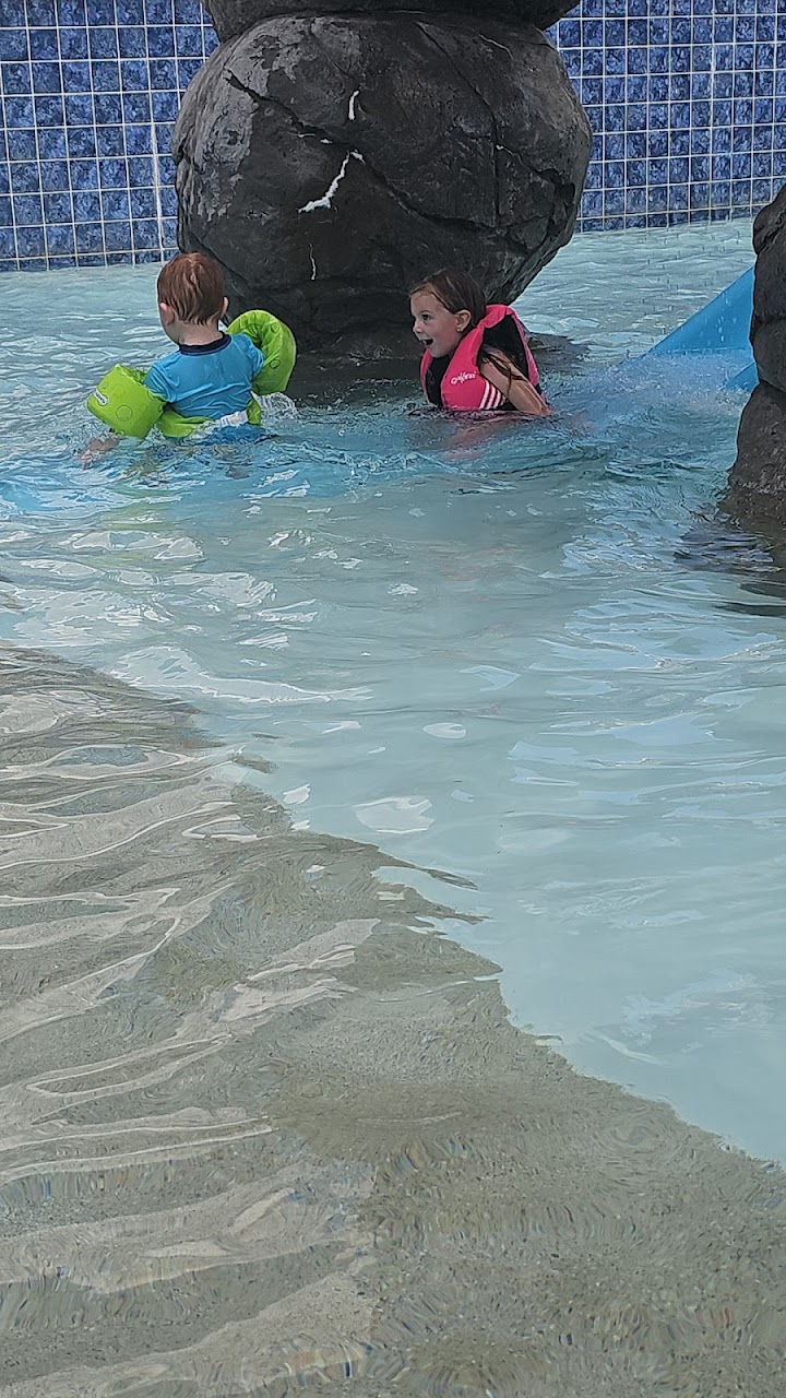 Excellent little water park with so much to enjoy! Little lazy river, zip line into the pool, two big trusting slides, diving area, and an in water play area ! Concession window showers and lockers (bring your own lock) and only $5/person!