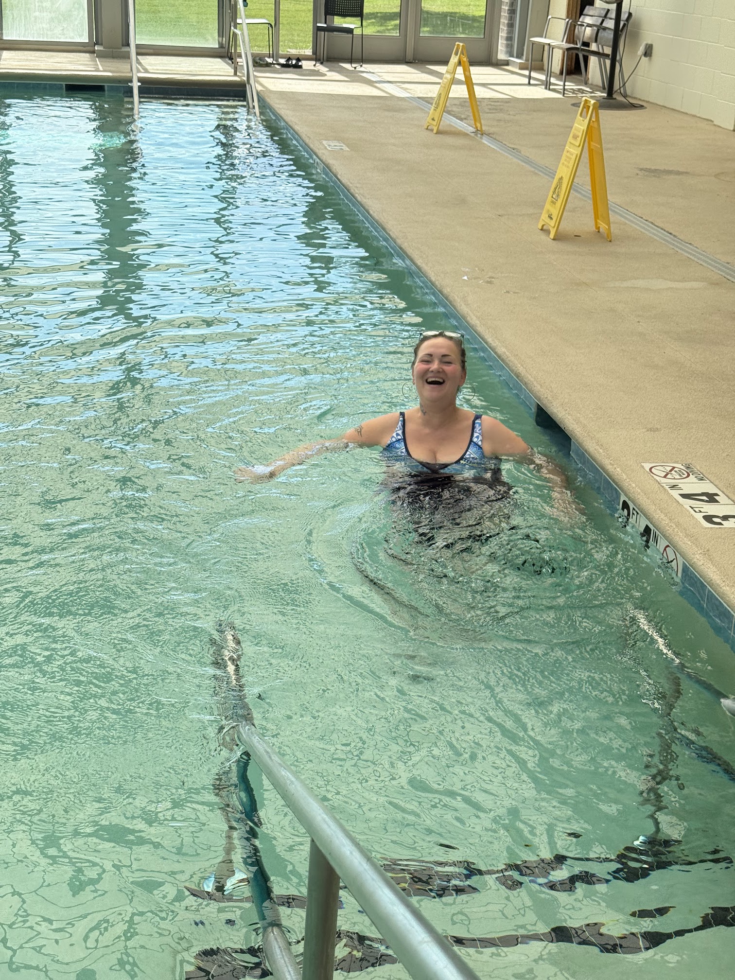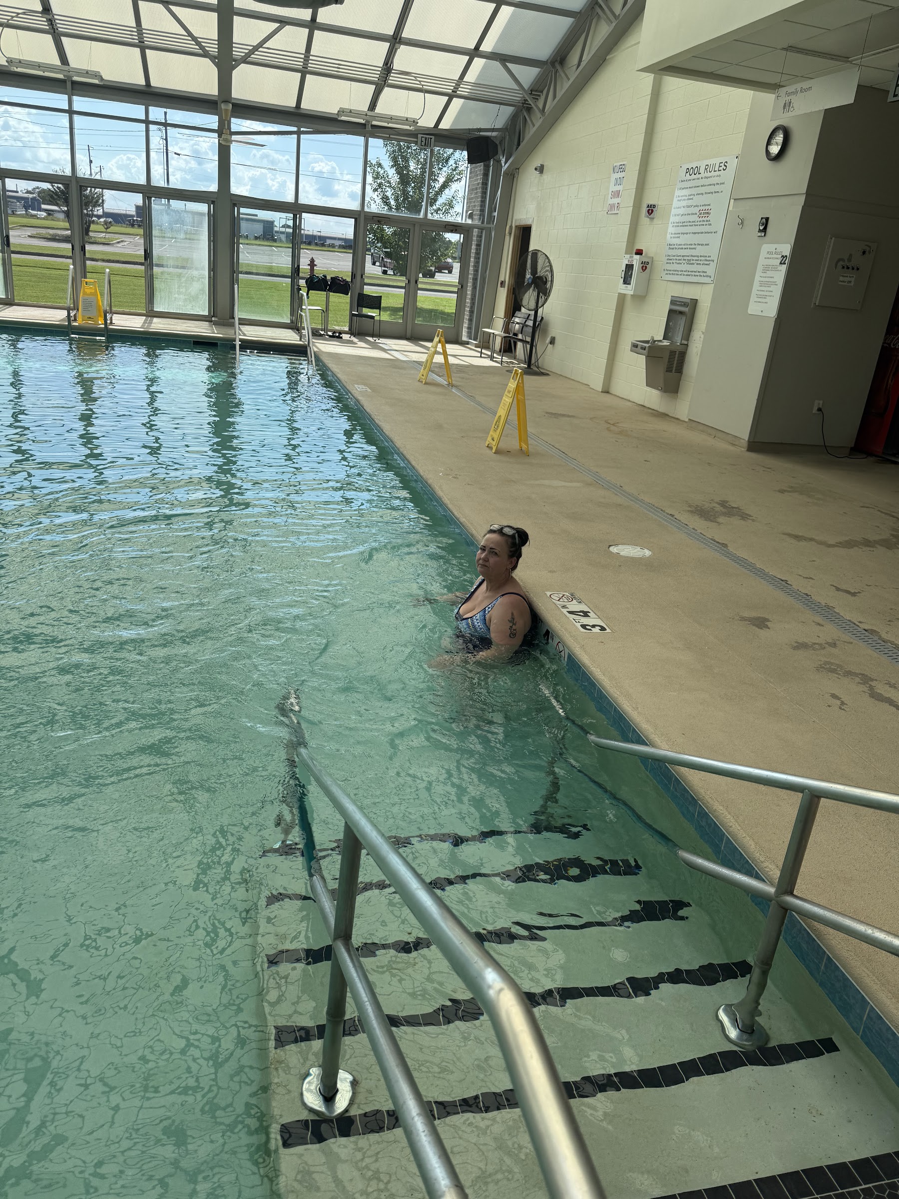 Running late today I still make time to go swimming my laps it clears my mind give me a positive attitude because I know I did something positive for myself I'm planning on starting support group for amputees at the community center Anyone interested or know someone that's going through or might have to go through losing a limb from diabetes car accident it's not the end it's a beginning of the resilience of the human body with the help of prosthetics and the support of others there's no reason to go it alone one step at a time