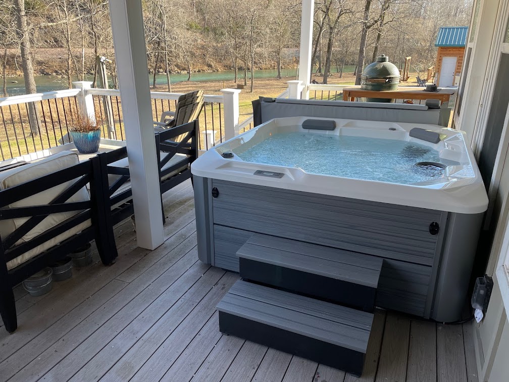 Just got my new Pace Hot Springs hot tub from the Pool Store. Love it! The delivery & setup team did a great job getting it up on a 5'7"-tall porch.