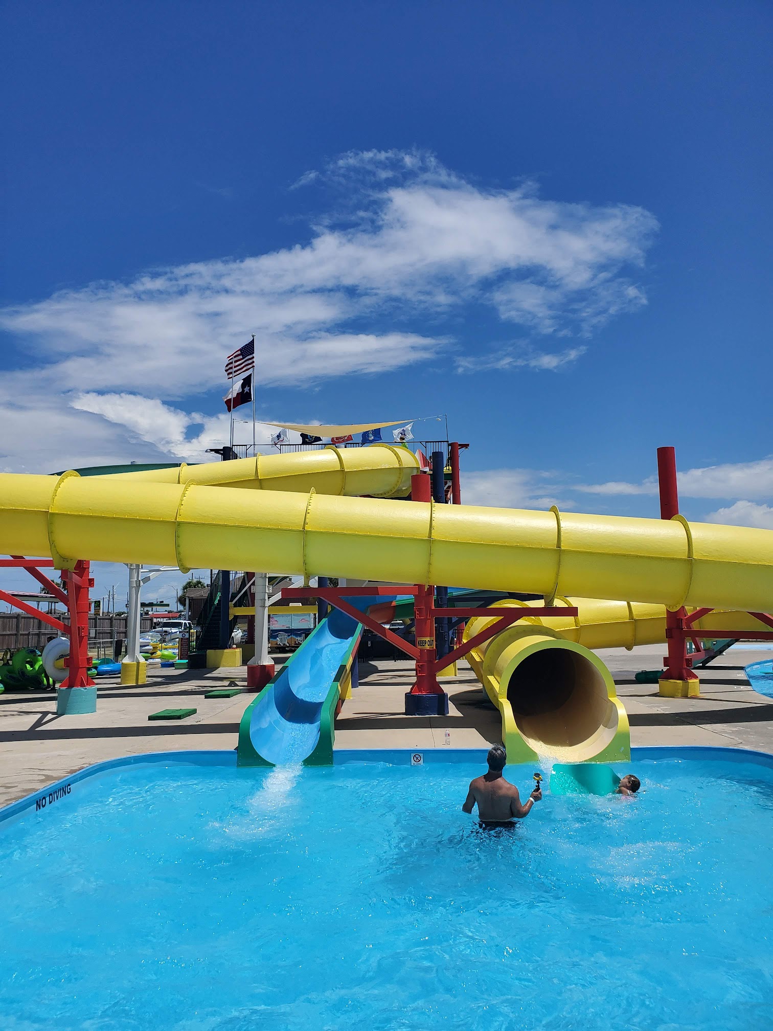 We have been coming to Crystal Beach for about 20 years and have come to Funtown many times. Always have had a great experience. But this year the water was green and one of the slides was not going. The employees told us that the pump to the lazy river was broken and they moved the pump from the blue slide to the lazy river. They said that the water should be cleared up pretty quick. The kids went down the slide many times but we adults didn’t want to float in the lazy river due to the green water. We were there for 3 hours hoping the situation would improve but it didn’t. We had 9 people with us and we were very disappointed for the $175 we spent. We are now concerned, after the fact, that it wasn’t safe to swim in that water. They probably should have closed for the day! Waste of money for our day!
