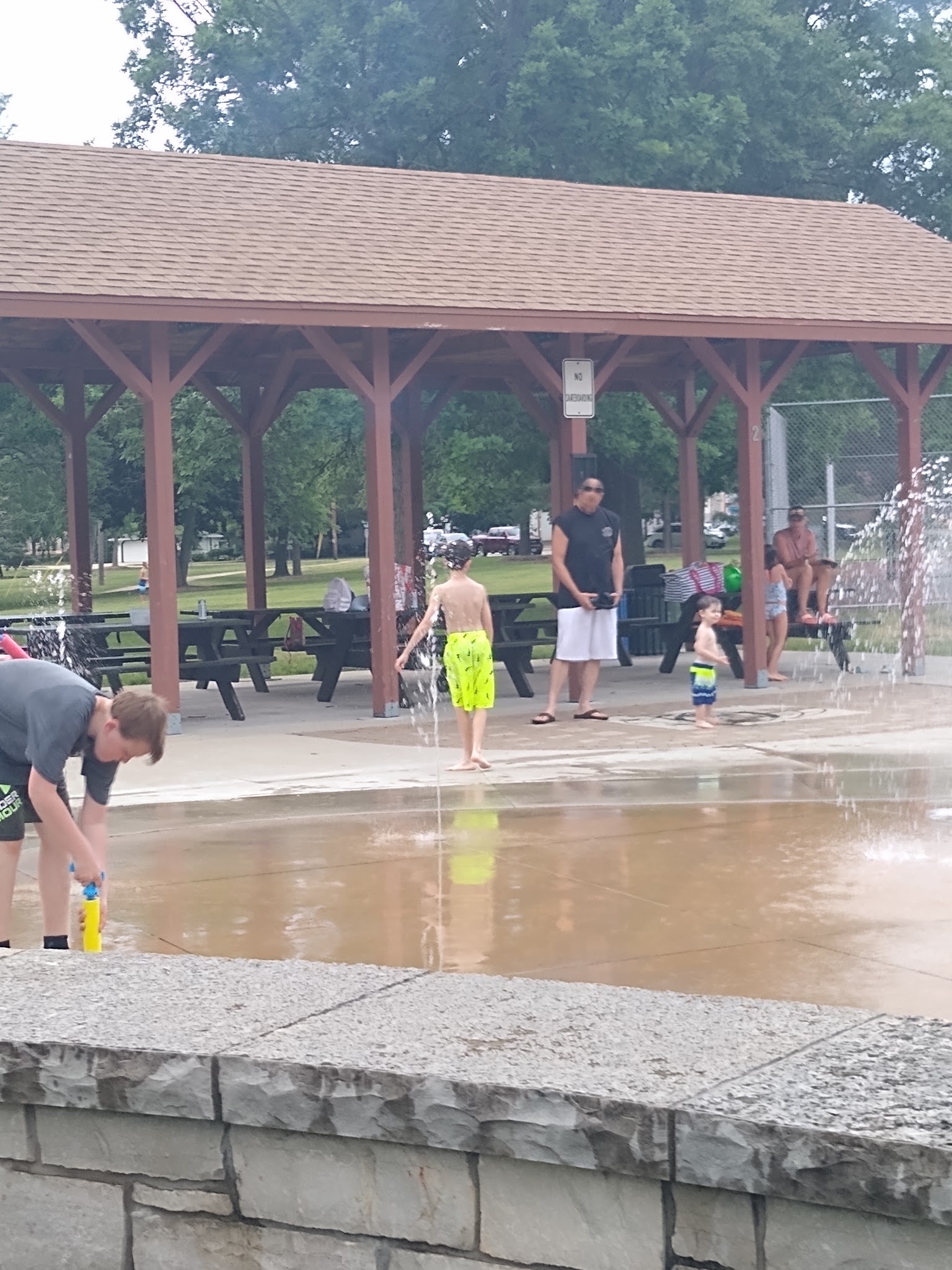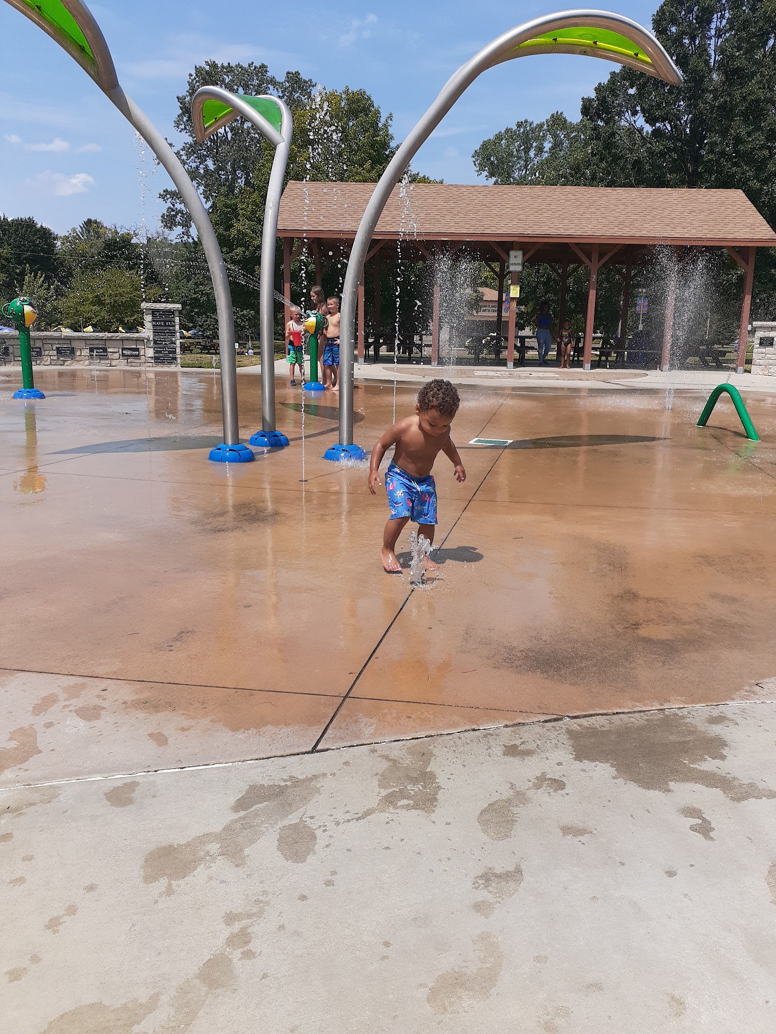 Awesome little splash pad. Kids absolutely loved it. Great way for them to keep cool in the summer. The rest of the park is really nice too. There is a pond with a nice path around it. Big open areas for picnics. And don't forget the big beer garden for a few adult beverages.