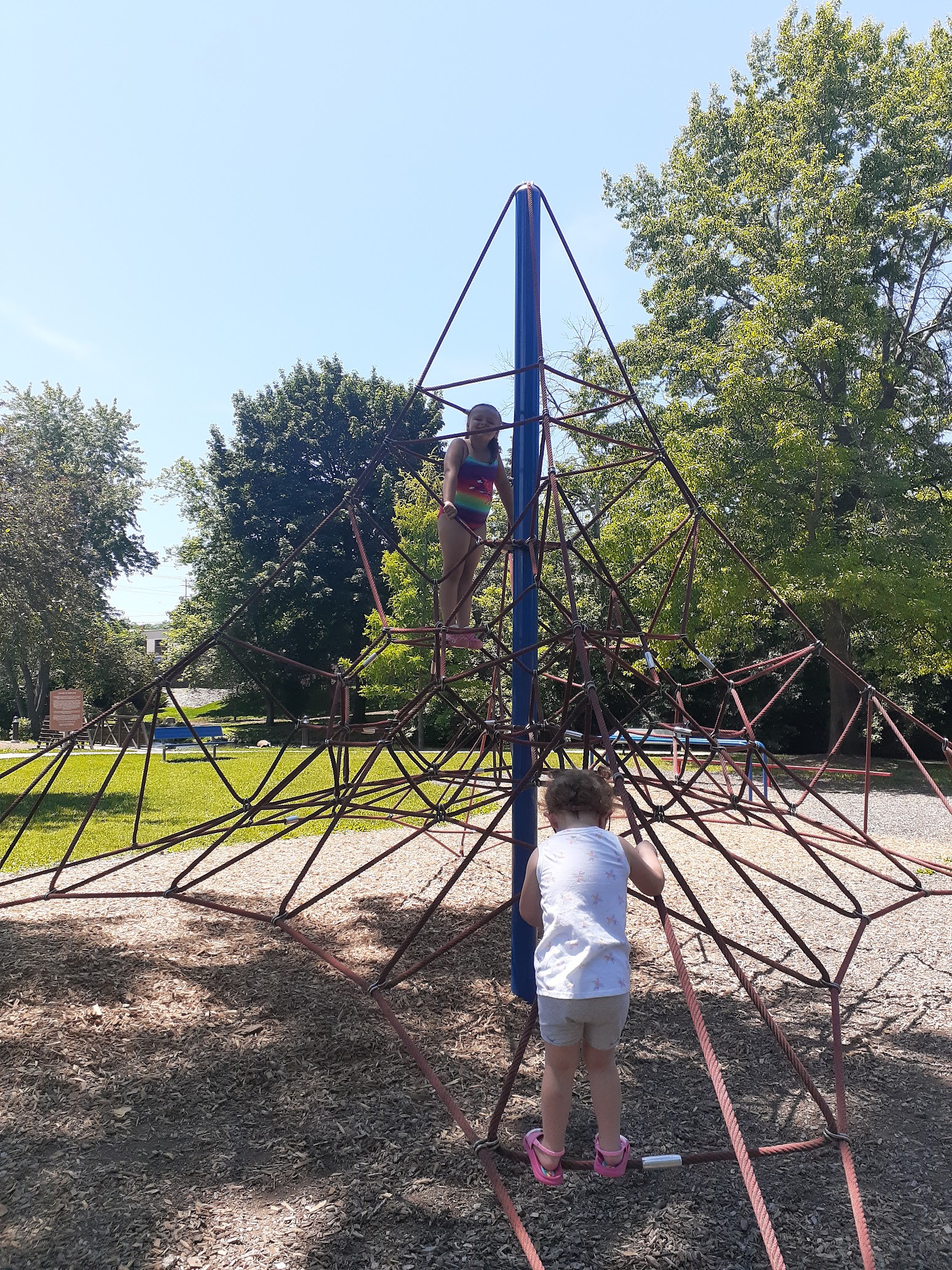 Great place for kids to have fun and stay cool. Lots of fun stuff for the kids to do. The park is nice and big. The splash pad is big with plenty of picnic tables and shelters for blocking the sun. The park runs along a nice little river that is fun to walk around and explore with the kids. Some people even fish. There are tennis courts as well. Really great park that offers numerous things! It is nice to have the water option as well ad dry fun all in one place!