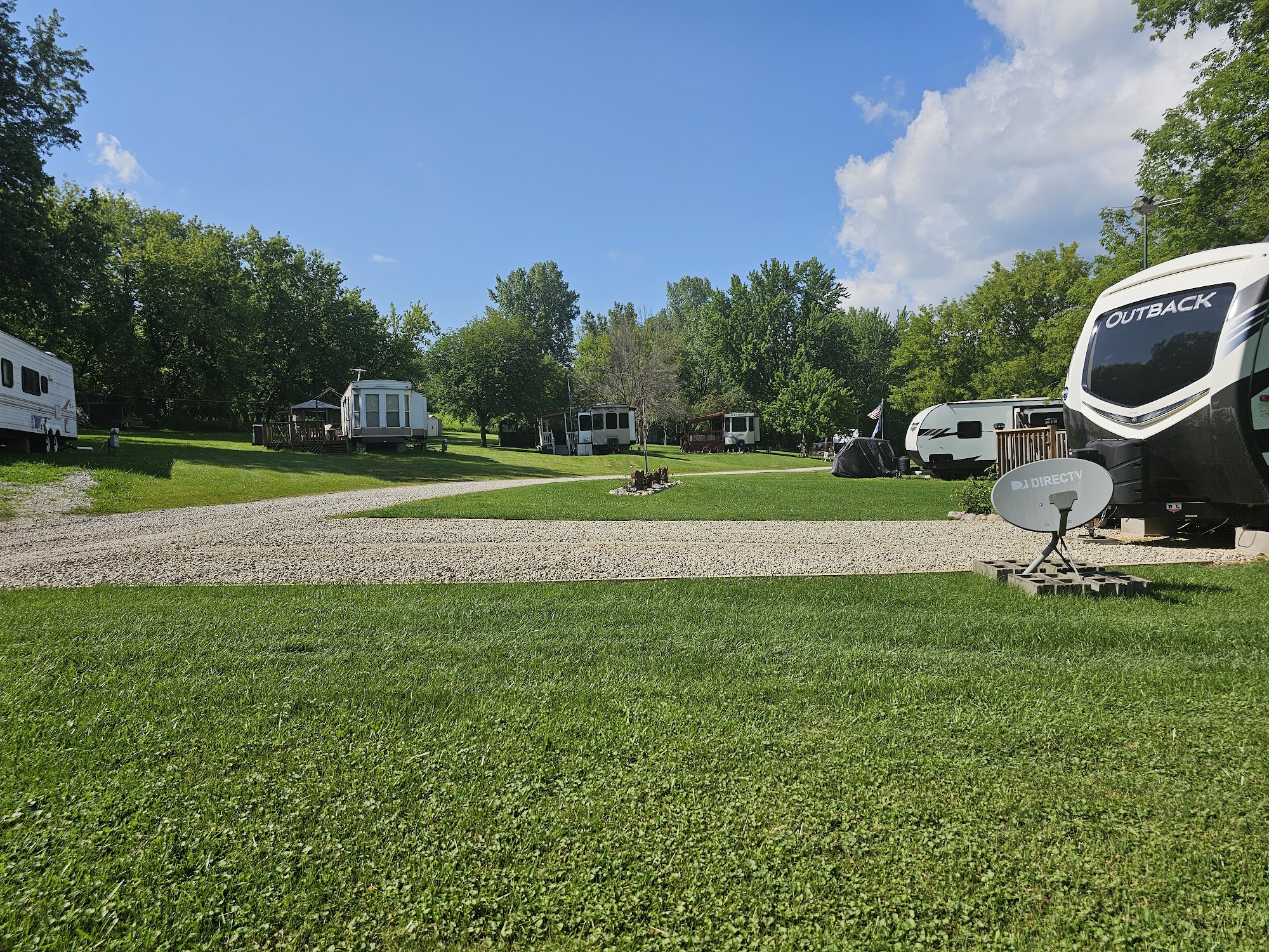 2 stars. Weekend campers beware!! The 2 stars are only because it is a beautiful campground, hammock trees, large, grassy and shady sites. Most people were very nice that we talked to. Sometimes the seasonals at campgrounds like this are very rude to weekenders. Weekend campers are mixed in with the seasonal sites. OK, so that meant 4 separate lots mowed their lawn on Saturday, and another was building a deck all day. Peaceful, right? Add in the constant drive by golf carts, and the late night party on the new deck across the road from us. They were so loud (after quiet hours) that I couldn’t even hear my husband sitting next to me at the fire. And the passive aggressive pointing out of “quiet hours are 9-9” upon check in, and the laundry list of rules that are common sense made this lifelong camper nervous! I brought it up when we left, and was told I needed to call the number on the door to the office to make a complaint. What?! You have signs all over stating what quiet hours are, you make a point to tell me at check in, and it’s on me to make a complaint? Where are all your rule enforcers?! If you have rules, you need to enforce them. How do you think state parks squashed their wild and crazy reputations? They have workers on patrol, enforcing the rules. We won’t be back, which is a bummer, you are close to home, and a beautiful place.