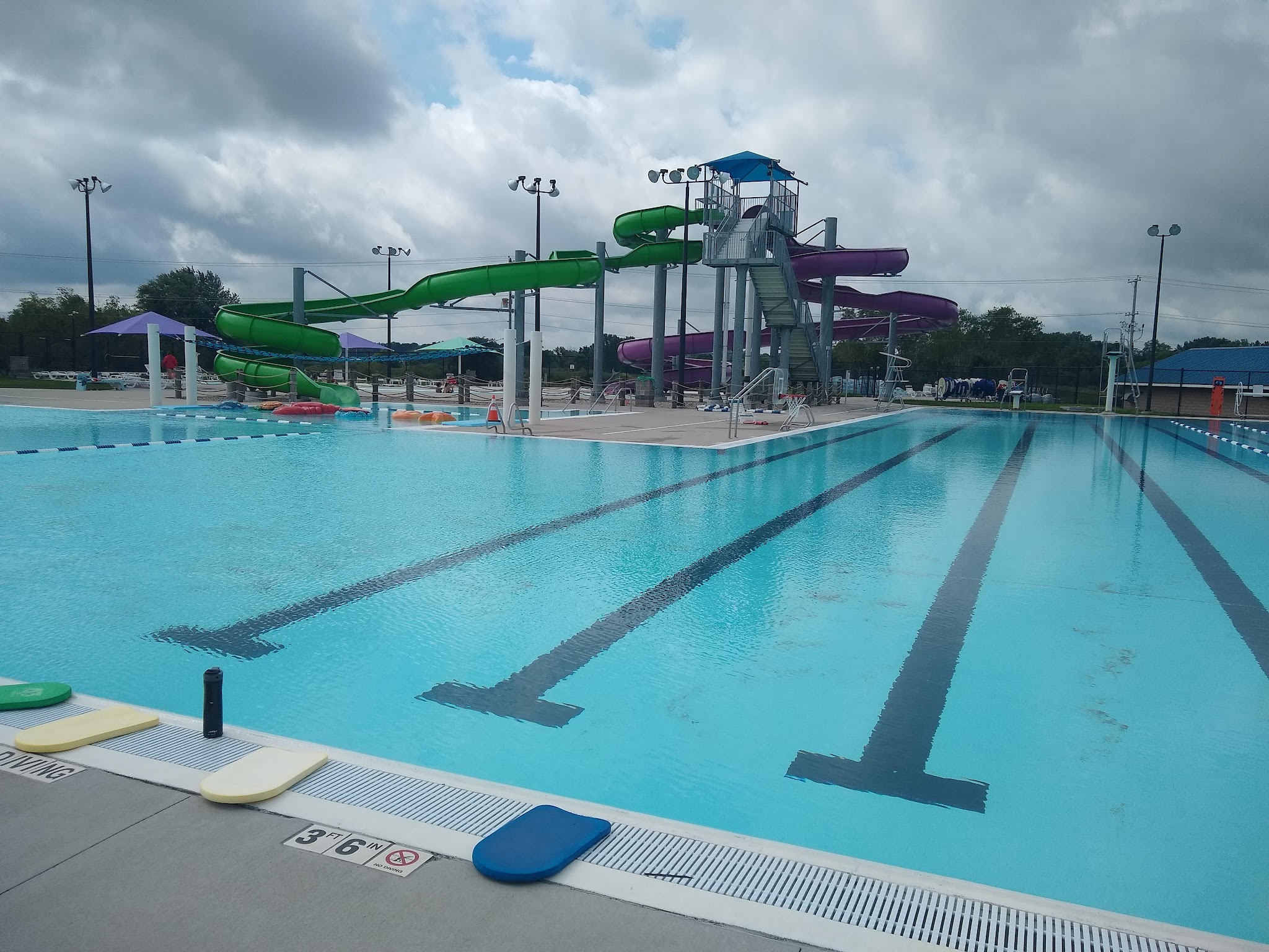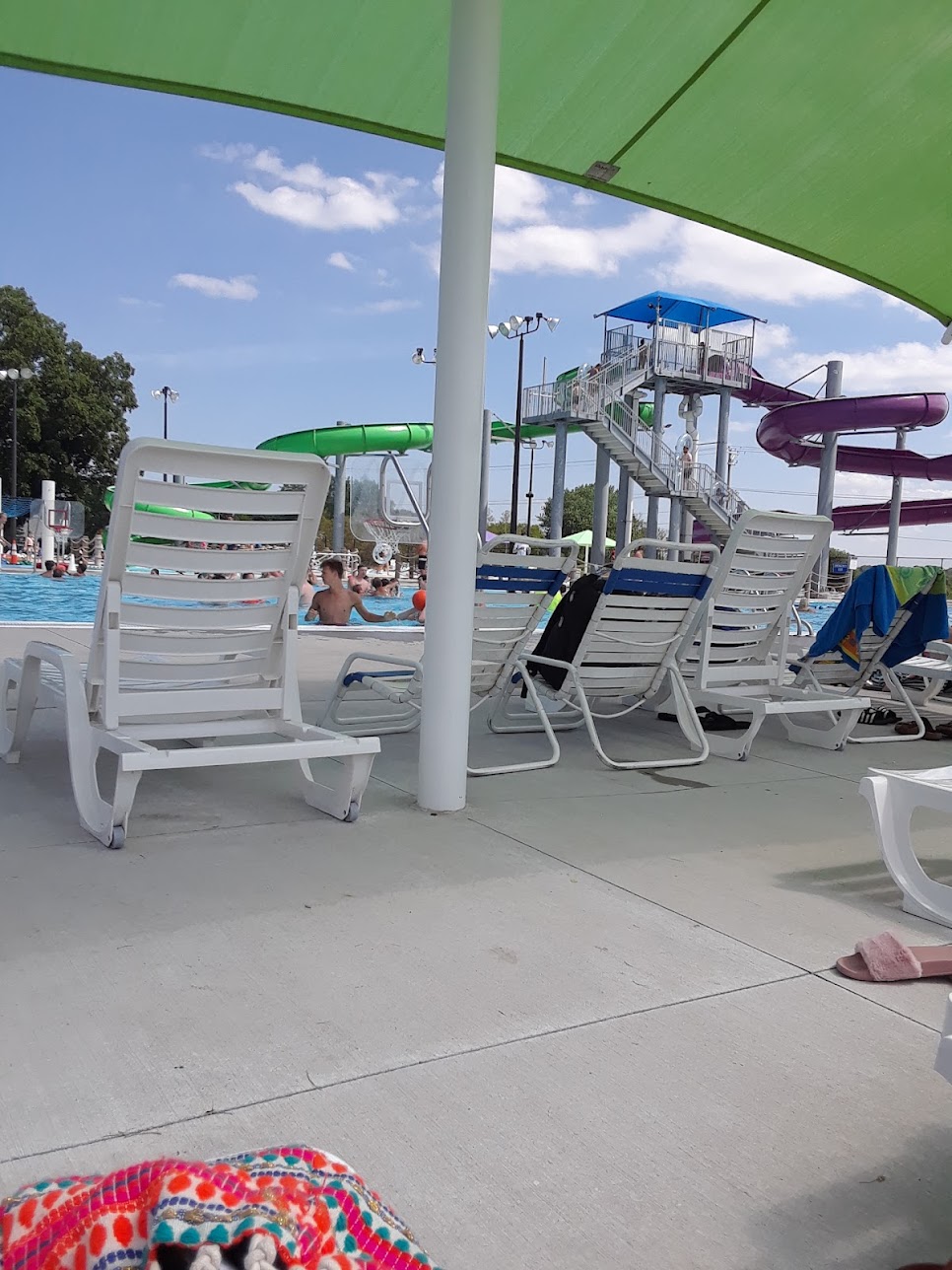Awesome water park!! Has a concession stand, plenty of lounge chairs, a lazy river (which you can water walk in before noon), a lap pool (laps during the morning & free swim during the day), water basketball, 2 diving boards, a kiddie swim pool, 1 body slide & 1 single or double tube slide. All this for the fantastic price of $8 per day for non-residents & $4 for residents (in Hartford)!! I highly recommend this park to all who seek fun &/or relaxation on a beautiful summer day!!
