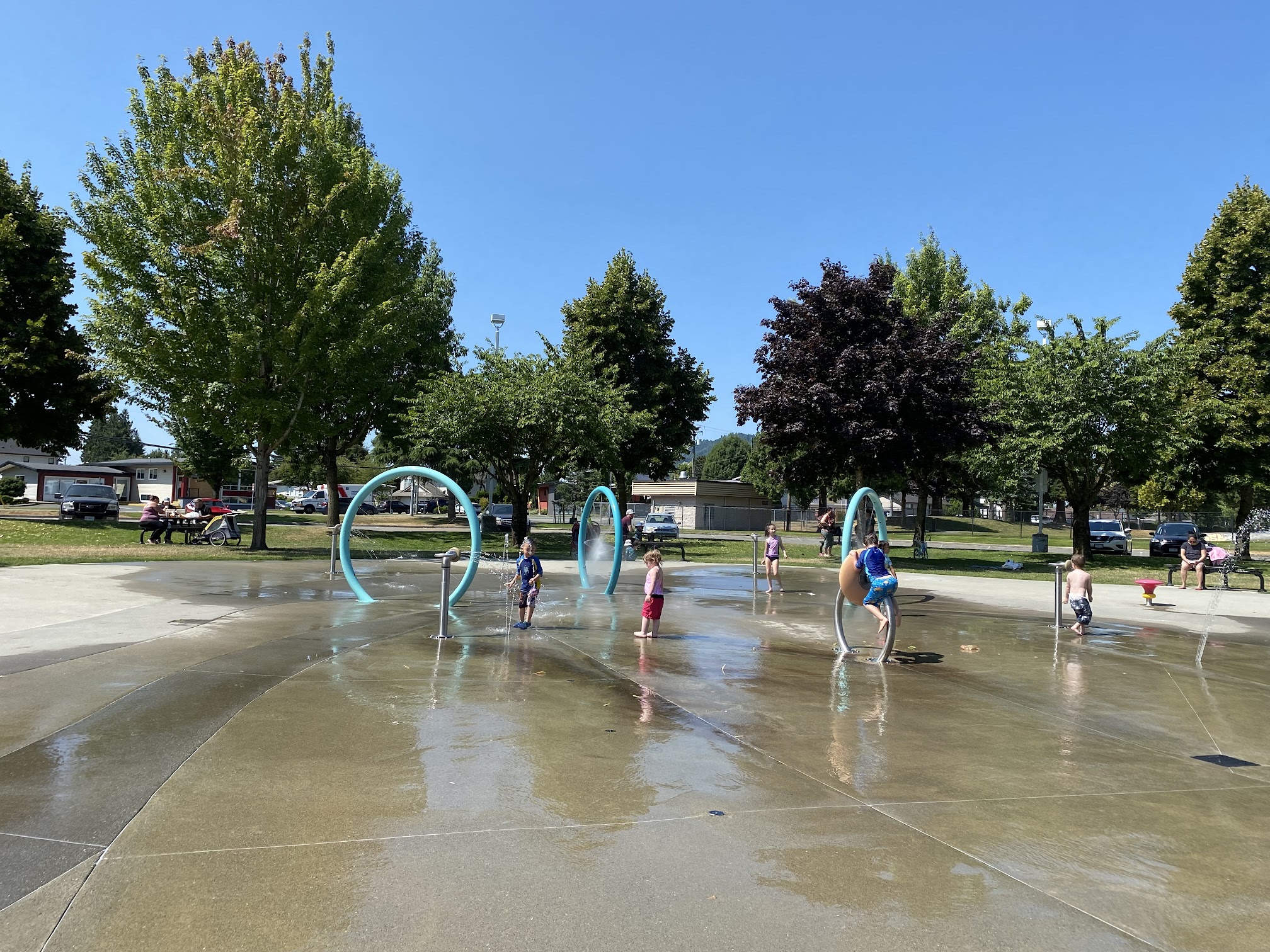 The kids love this park! The bathrooms are clean, and there's a large playground so close that the kids love too. Tons of parking and usually lots of space to pick a seat somewhere. Snacks and icecream are also available for purchase. I can't think of a better free summer fun spot in Chilliwack.