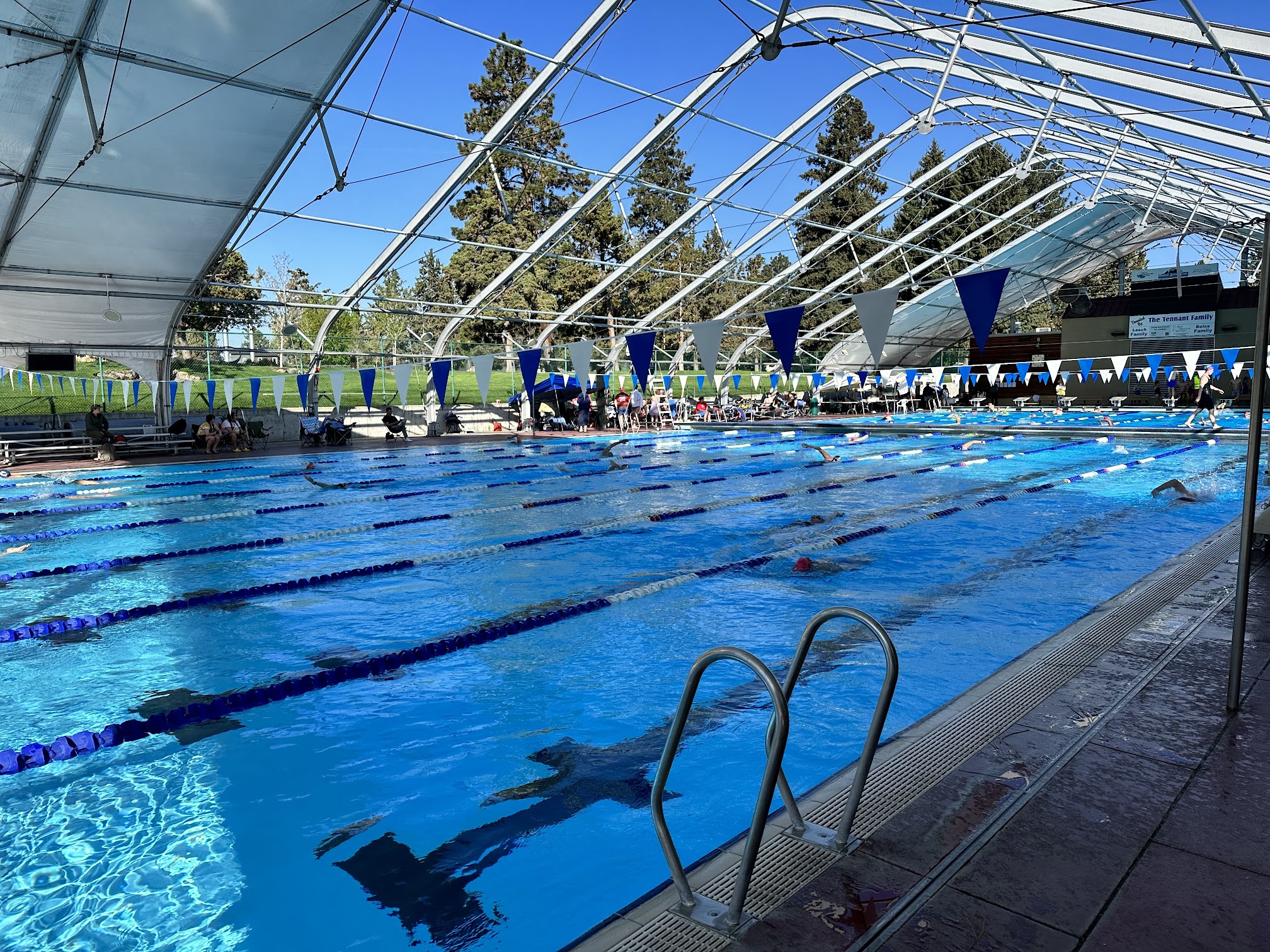 Update: It can be tough to get a lane here, as the pool is usually set up/scheduled for the needs of the Bend Swim Club, which means reduced lane availability during peak times. I get it, they need the space to practice, but for a $9 entrance fee (with no discounts for locals), it's tough to not feel a little disgruntled. -- This place is great. The women's locker room is always clean, the pools are beautiful, and the fitness center has a good variety of equipment. Some of the facilities and equipment are showing their age, but staff do a good job of keeping it up.