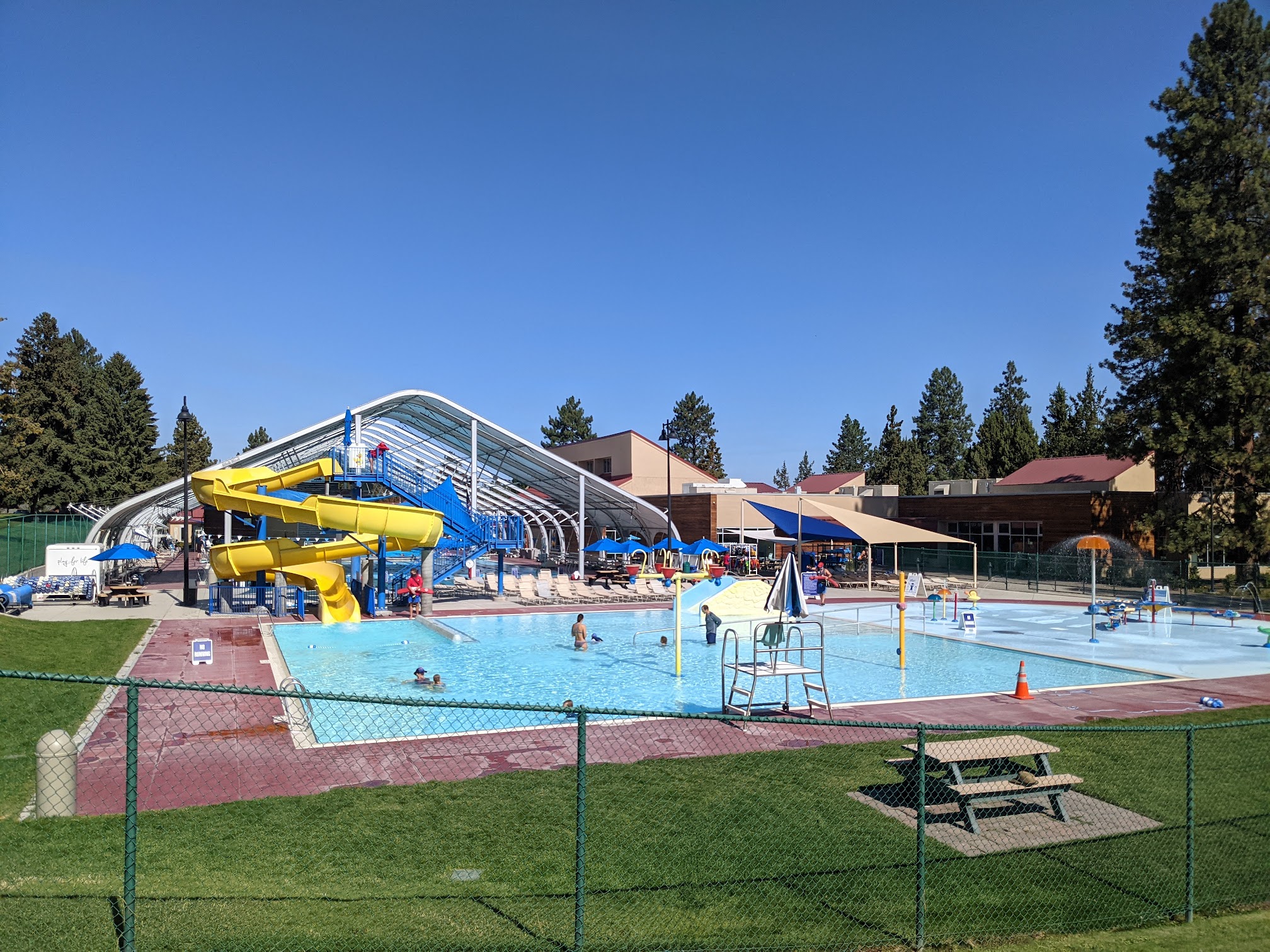 My daughter absolutely loves this pool it is her favorite! In fact we drive all the way from Prineville once a week to go swim here. The splash pad/pool for kids is amazing, so many activities! They even have a small slide for toddlers since they can't go up the big one yet. They can go down the big slide with an adult though! I'm throughly impressed! The price is very accommodating too! The ladies at the front could be a little nicer at times, but all around so much fun!