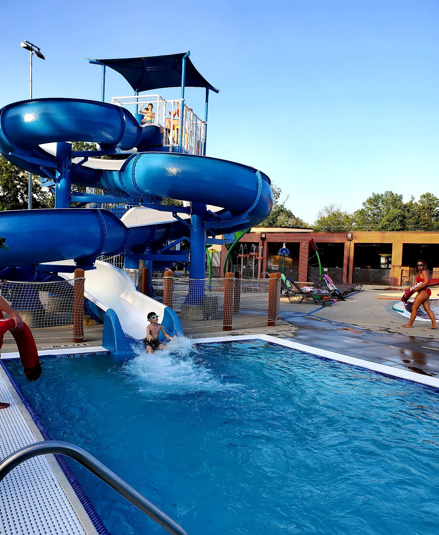 Best and most relaxing setup for a community pool!!! Love the very gradual baby pool area to deep water layout. The splash pad out of the water is perfect for courtesy break for my son and other children to have a place to play!