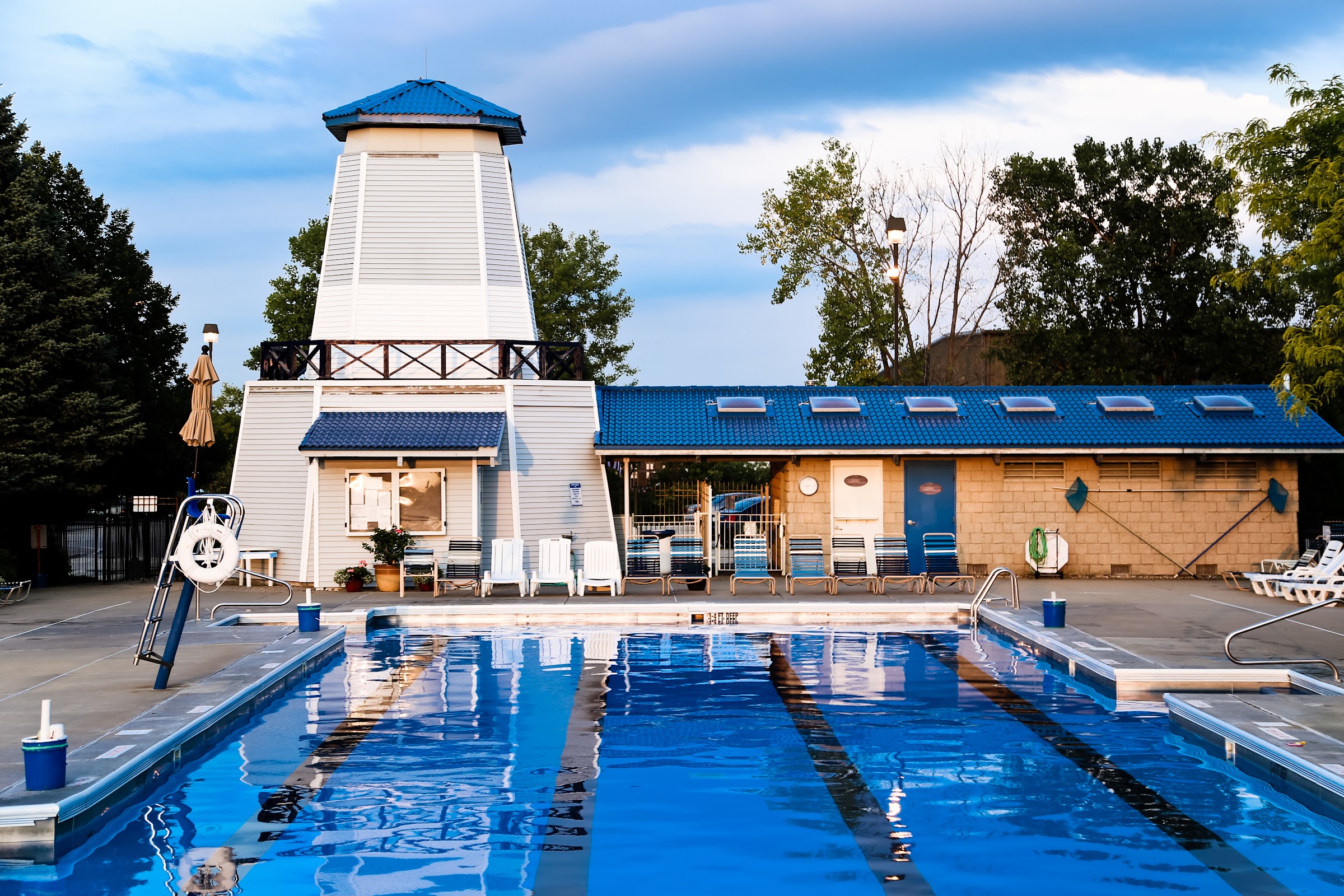 Local health club featuring a group fitness studio, gym, basketball courts, and four pools.