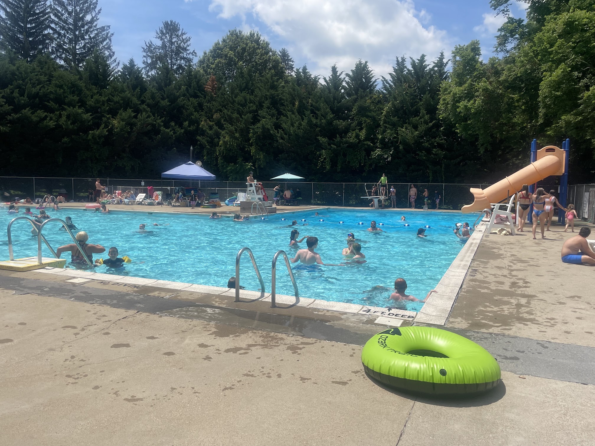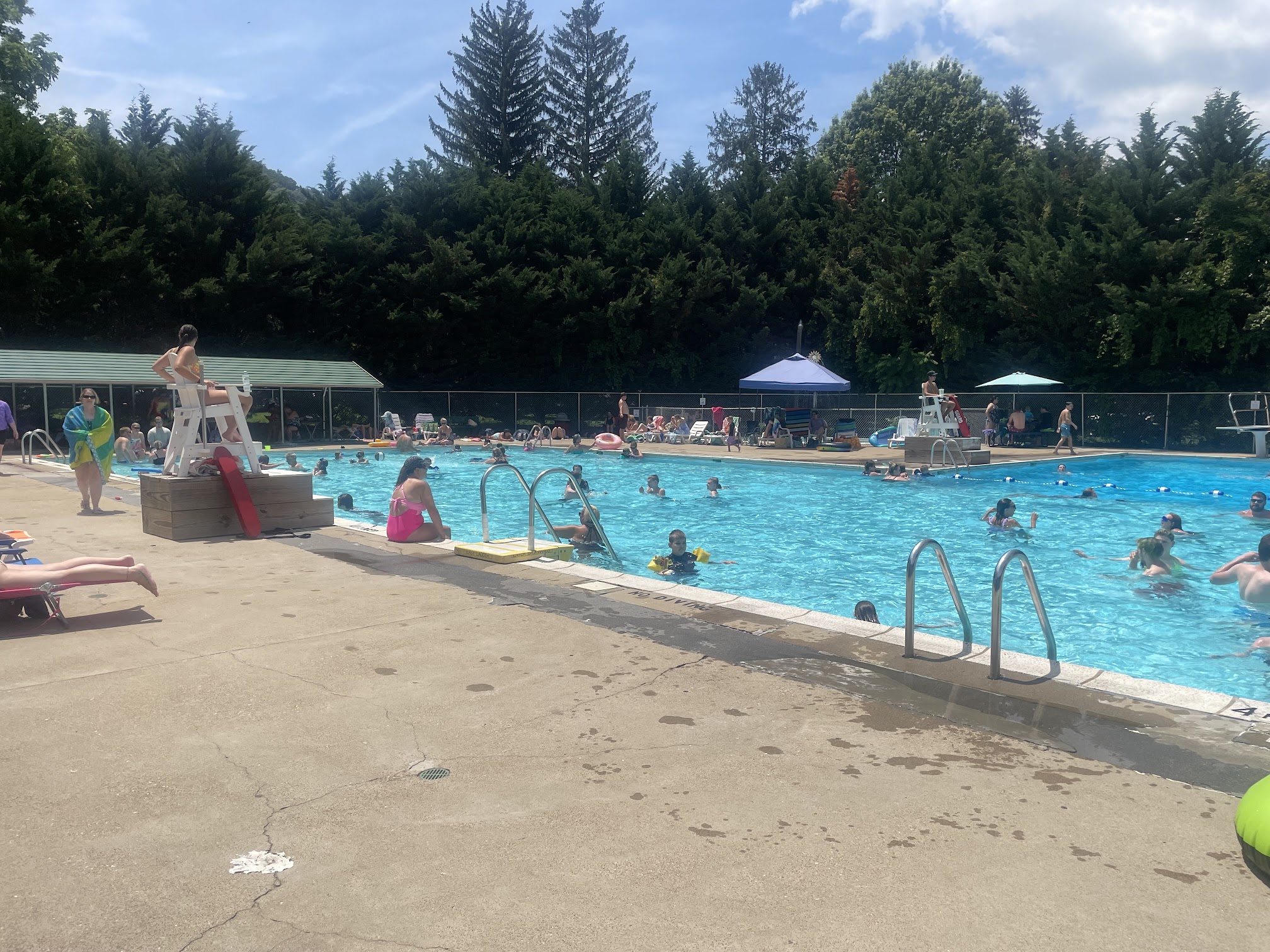 What are people saying (AI review summary)? The reviews are predominantly positive, praising the pool's cleanliness, friendly staff, and pleasant atmosphere for swimming and relaxation. Many appreciated the uncrowded environment, the convenience of not having to rent chairs, and the facility being open on holidays. Some reviewers found it superior to other local options and a great place for parties. The main constructive feedback suggested that the facility could benefit from some updates, specifically mentioning the diving board.