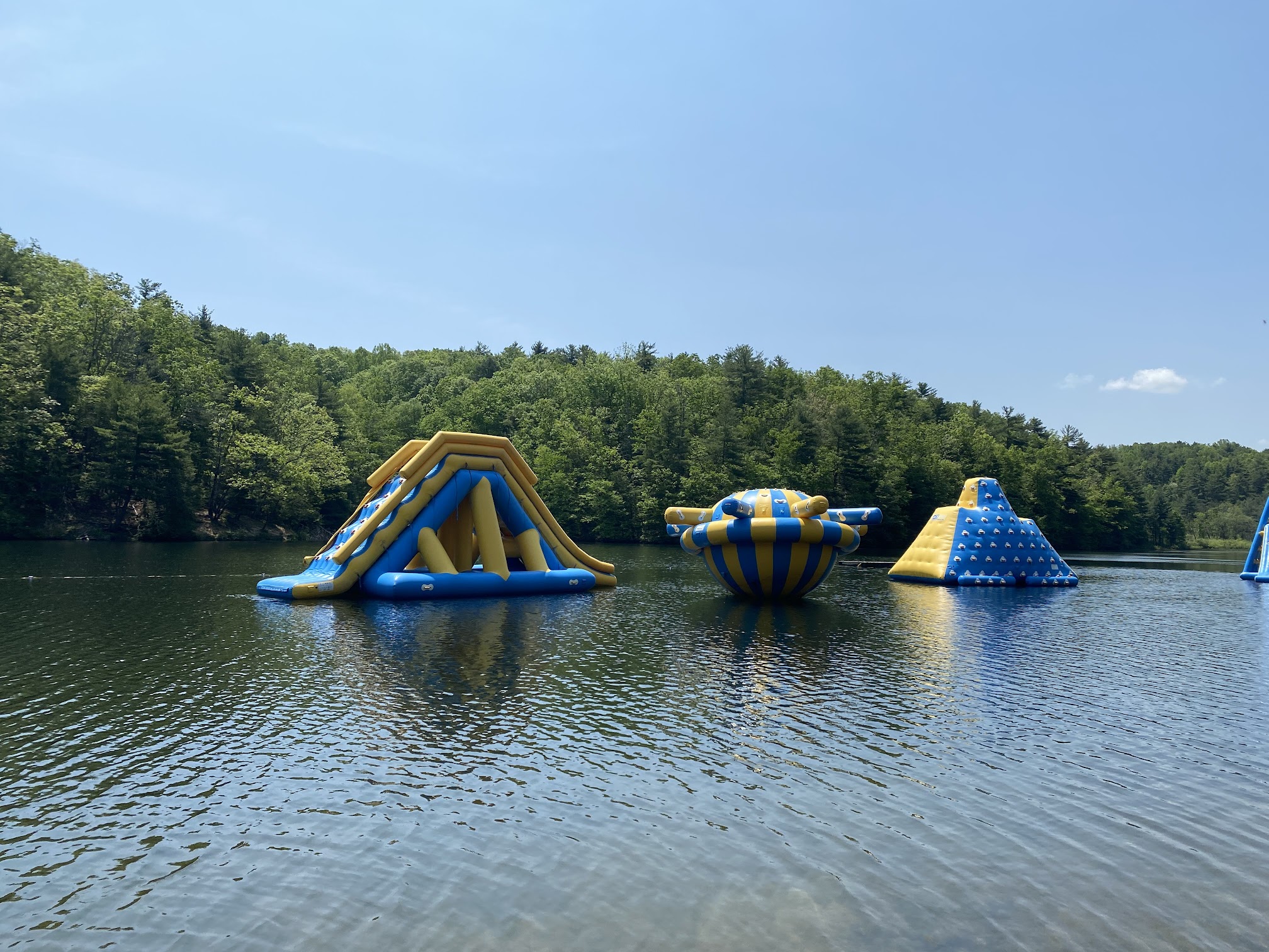 Pipestem Splash Park is an inflatable water park located on Adventure Lake at Pipestem Resort State Park in Lerona, WV. It offers a variety of inflatable slides, trampolines, and climbing structures directly on the lake, providing a unique aquatic playground experience within a larger recreational area that also includes a swimming beach.