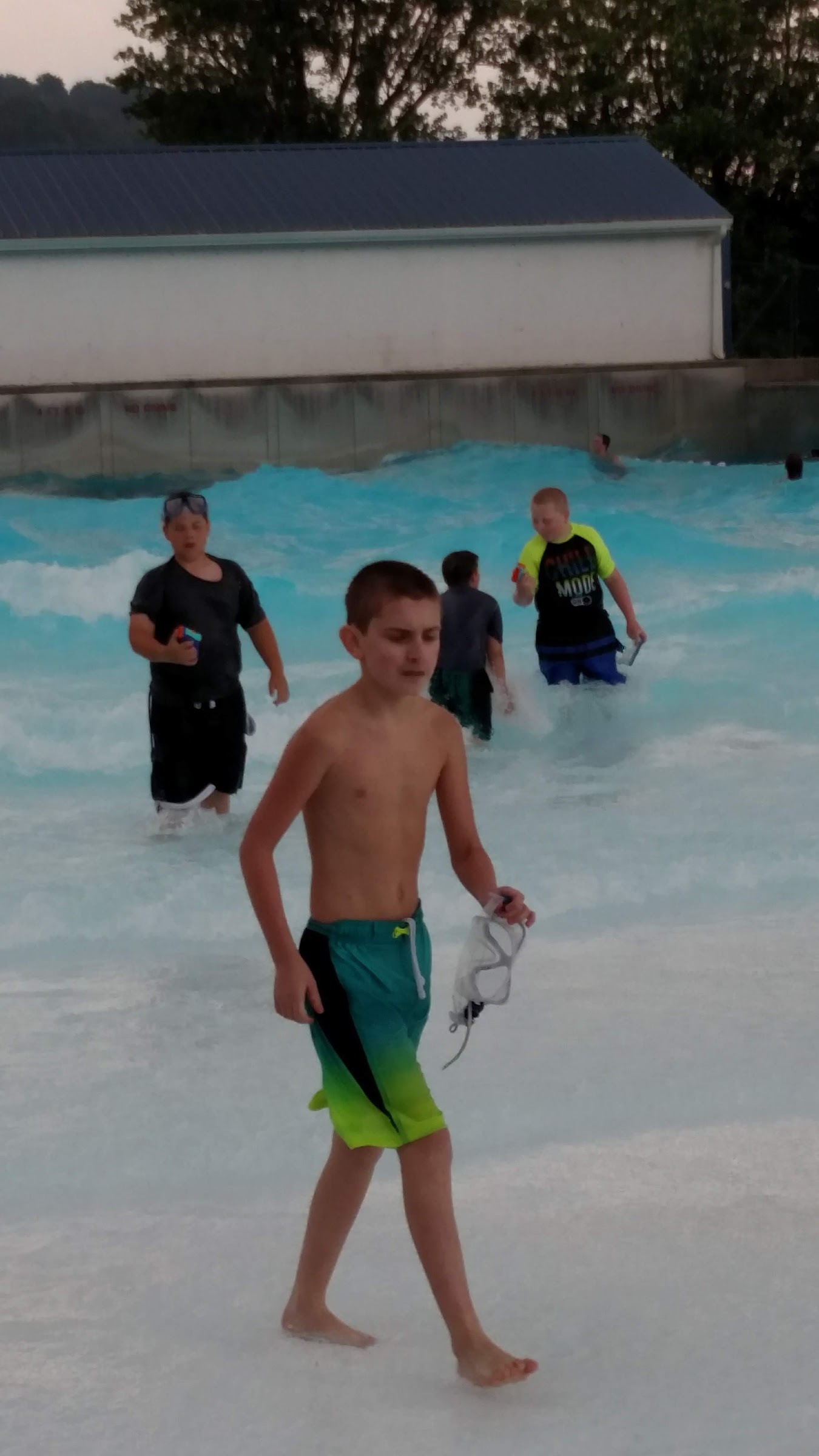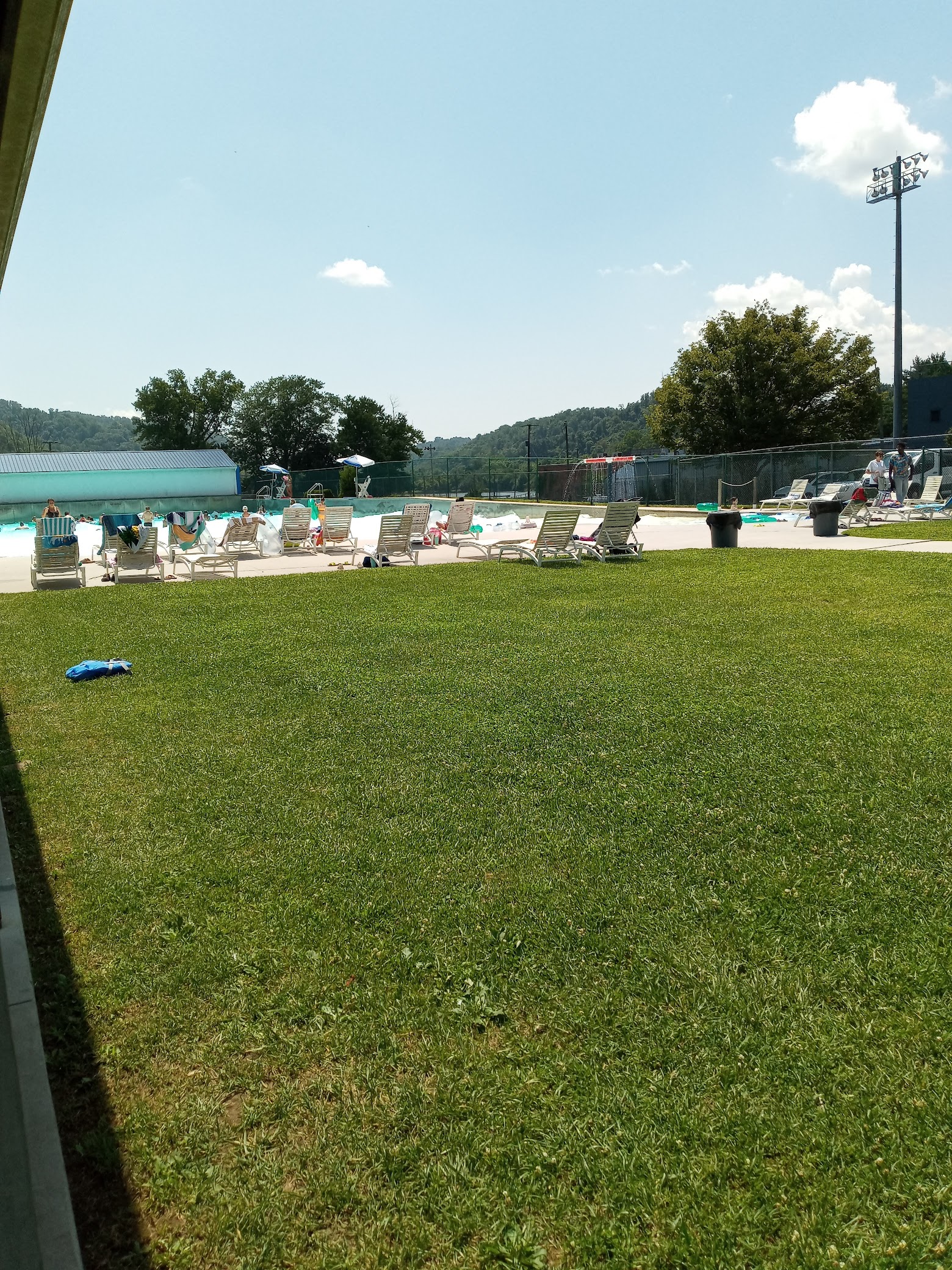 Great pool, not too busy on a Wednesday afternoon. Nice that you can bring in food and drinks. 10 minutes of waves, 10 minutes off. Shaded picnic tables available. Only complaint is the lifeguards didn’t inspire confidence. They *usually* stopped throwing football when the waves started but I feared for peoples’ heads and drowning when the waves were off. (and my head from patrons throwing them)