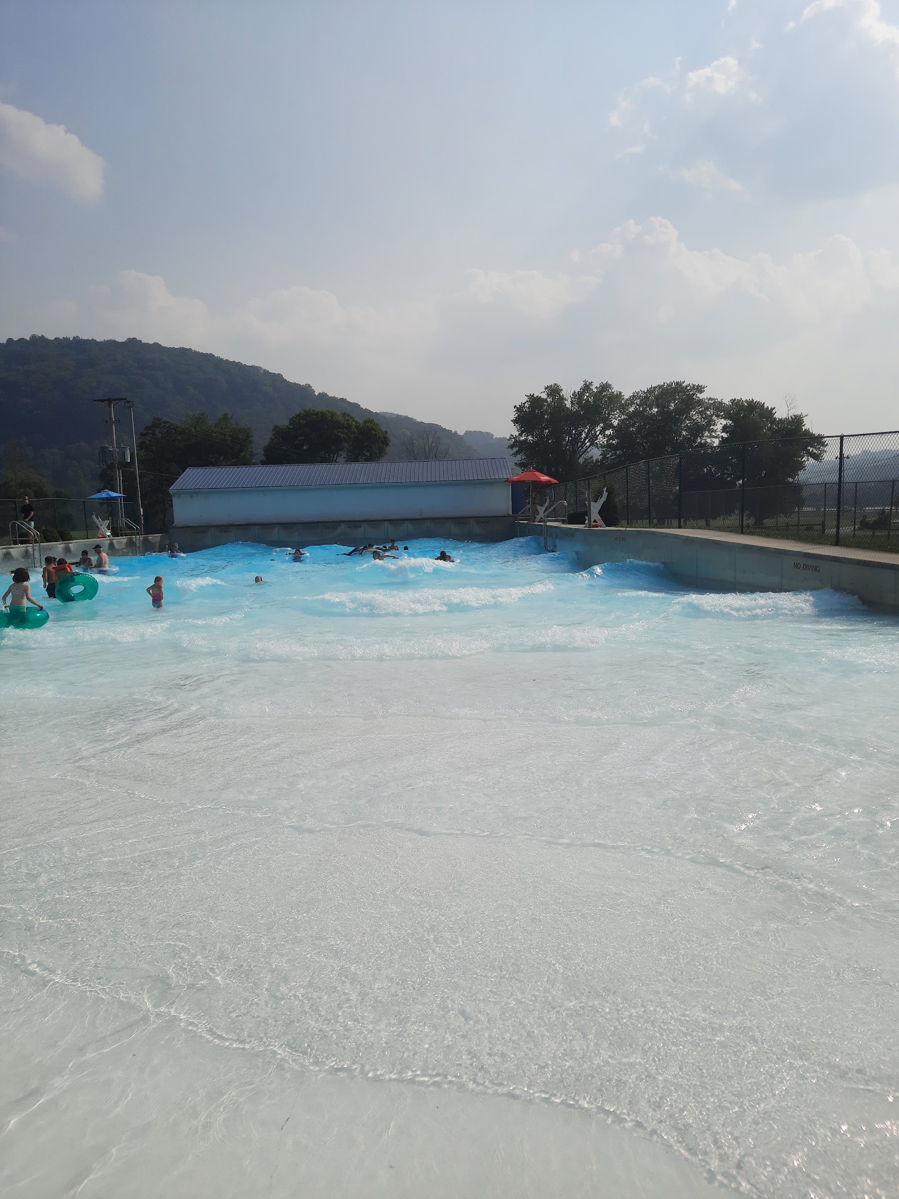 This is such a great little pool in the heart of Saltville, VA. It’s a little bit of a drive off of Interstate 81 but it’s definitely worth the trip. The pool is a saltwater pool. It’s not huge but it’s the perfect size considering it’s a wave pool. The waves come in spurts and seems to be around 10 minutes of waves, 5 minutes off. When the waves are off, the deepest section is around 4.5 feet. They have heavy duty inner tubes available at no additional cost. There is also a shallow kids section. Once the waves start, it may be difficult for young children to be in the deeper section as the waves can force the water to more than 5 ft plus current. All of the staff were very friendly. The snack bar was affordable and had chips, crackers, candy bars, and bottled drinks. There are a few lounge chairs available and a covered picnic area with tables. The bathrooms were as expected for a public pool. I highly recommend this pool for adults and kids, I think it’s fun and it’s like having a little piece of the beach in the Appalachian Mountains.