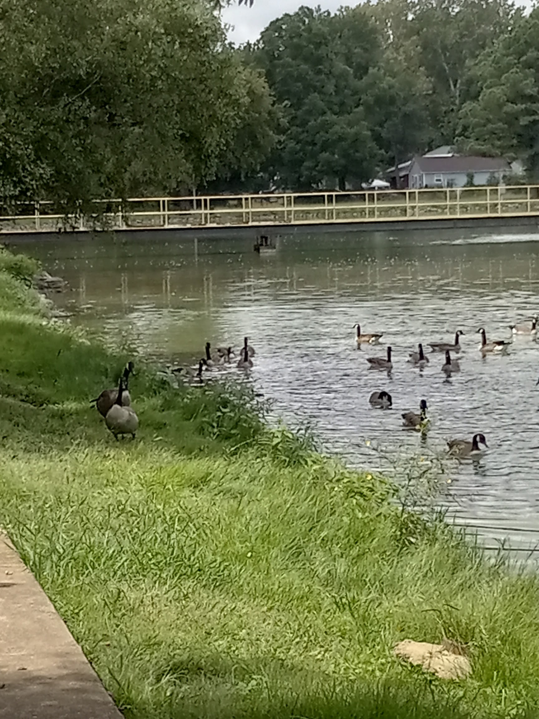 I took my daughter here to feed the ducks. It was very pretty and well-kept. Not many people around. Also has a nice playground. There was a ridiculous amount of ducks, so we were not disappointed. Included: gazebo with picnic tables, multiple playgrounds, "okay" swimming pool that gets pretty crowded in the summertime.