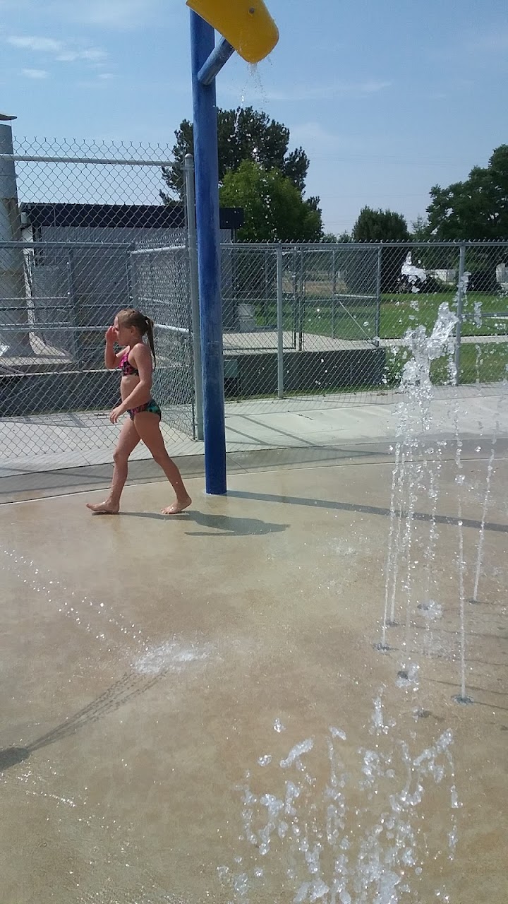 Clean place featuring a splash pad and playground, as well as basketball hoops and diving boards.