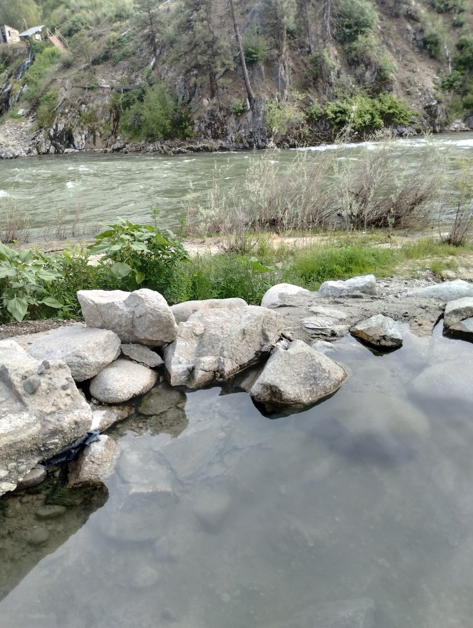 What are people saying (AI review summary)? This hot spring is highly praised as "awesome" and "amazing," offering easy access from a large roadside parking area approximately an hour from Boise. Visitors navigate a short, steep descent via stairs to reach the clean hot pool, which provides beautiful views of the river. While some describe the water temperature as "perfect" or "not too hot," others find it potentially too cool. For cooling off, there's a stone-built cold pool directly by the river, alongside a small sandy beach. The scenery is noted as great, and the location is far enough from the highway to mitigate road noise. It is generally not crowded, even during summer midday visits, and offers a more secluded ambiance at night. Reviewers recommend it for both summer (advising hiking sandals for the walk) and winter (with a caution for potential slips on snowy or icy paths). The spring is described as small and dependent on water levels.