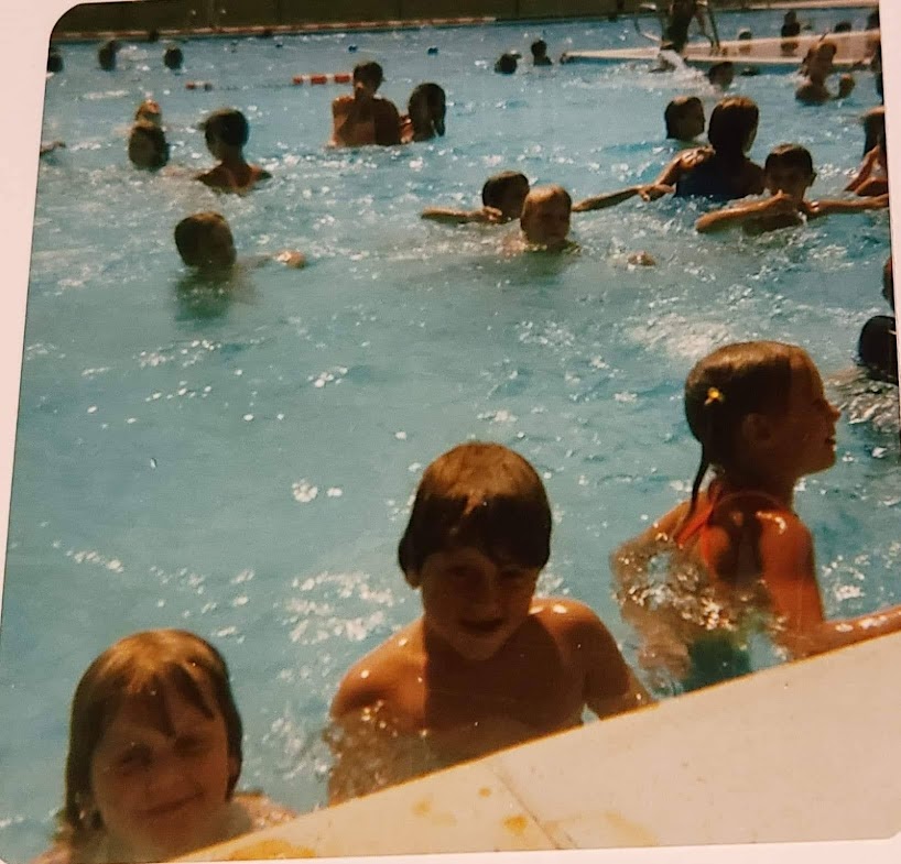 Great pool for swim lessons, covered bleachers for parents to wait in