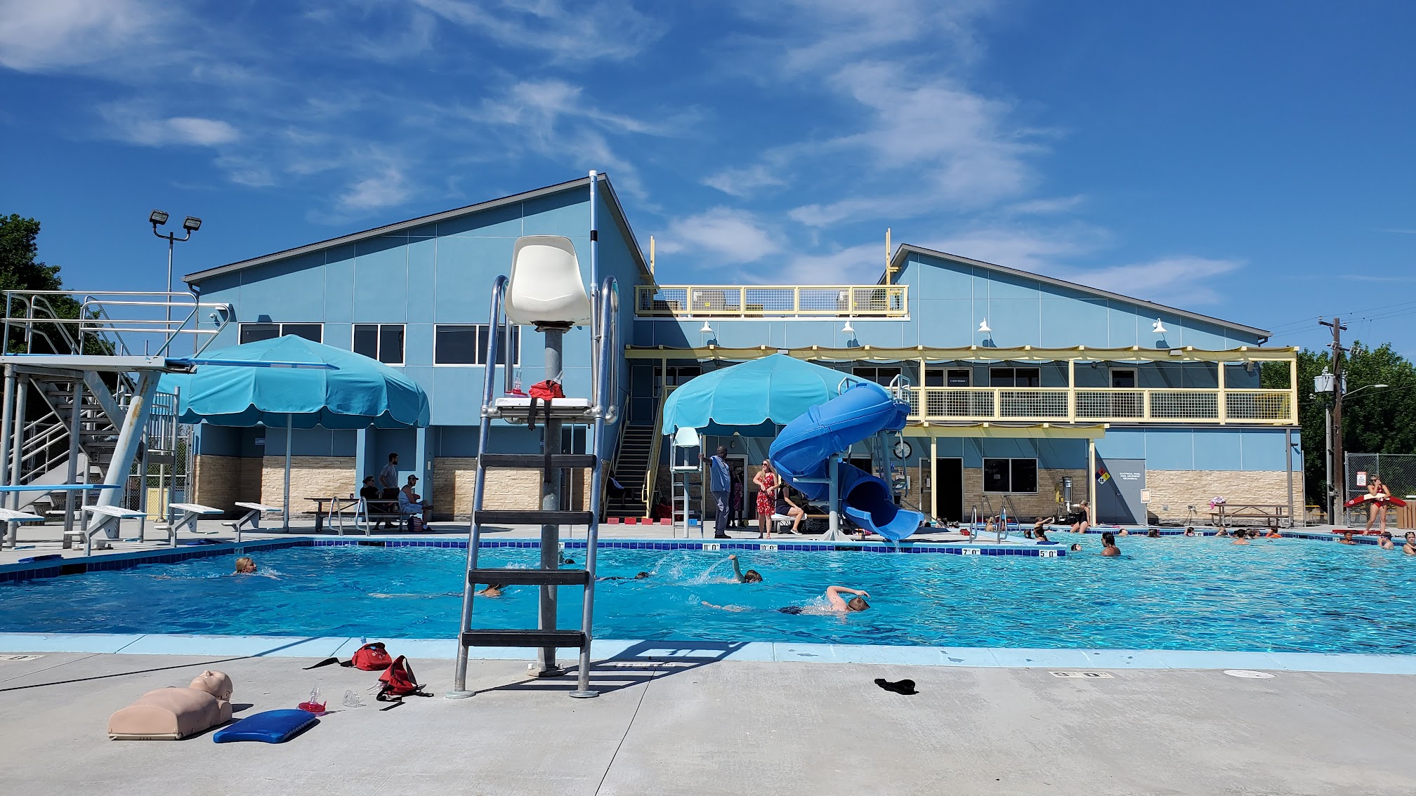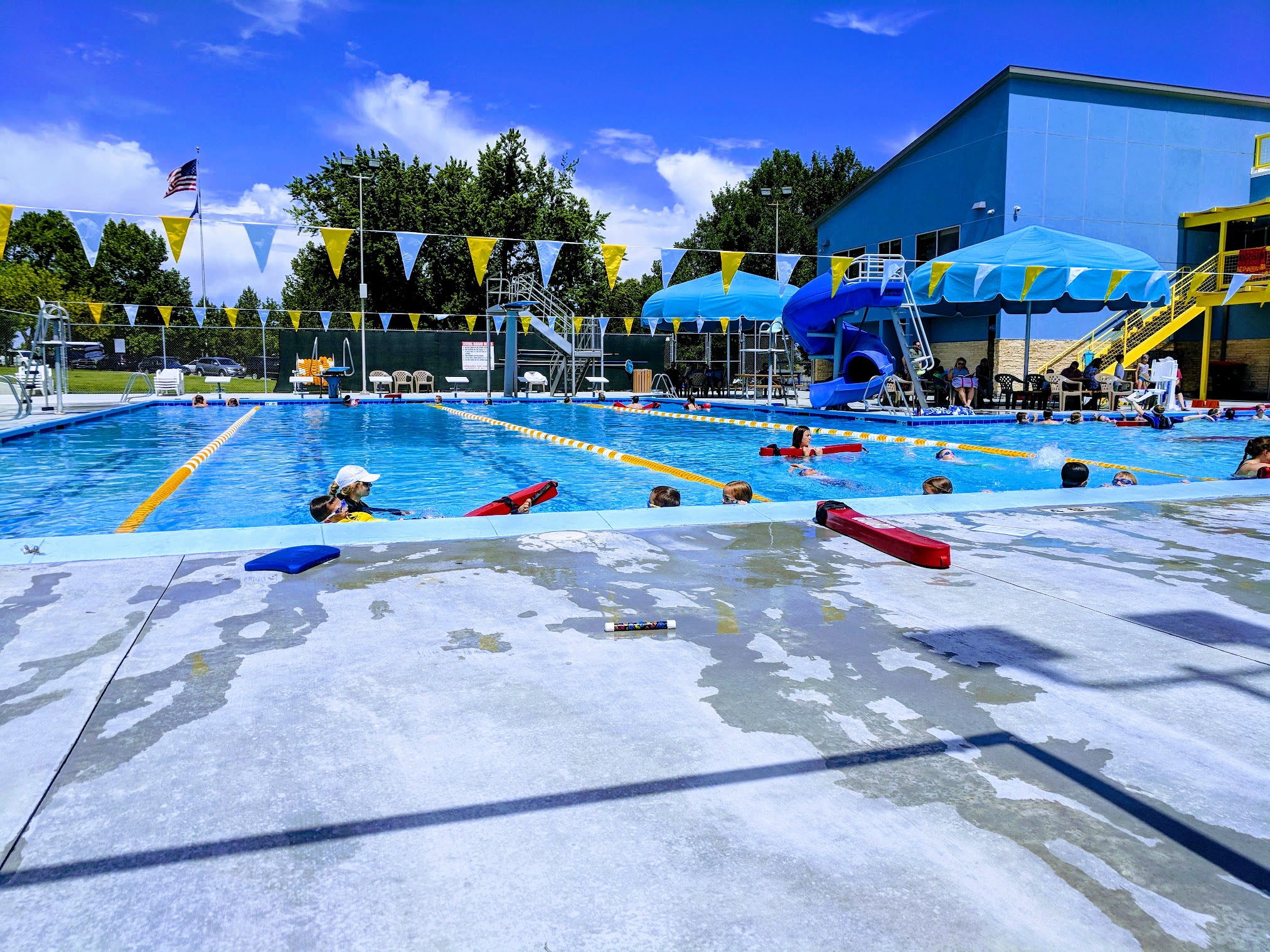 Recently upgraded facility. Very accommodating for a family. Pool is a good size with wheelchair accessibility, three different slides, diving board and a high jump. The deep end is sectioned off. There is also a heated kiddie pool with a slide and a wheelchair ramp. I took my kids there for swimming lessons, private or group lessons are available. It was structured and organized and I loved the instructors. My kids looked forward to lessons everyday.