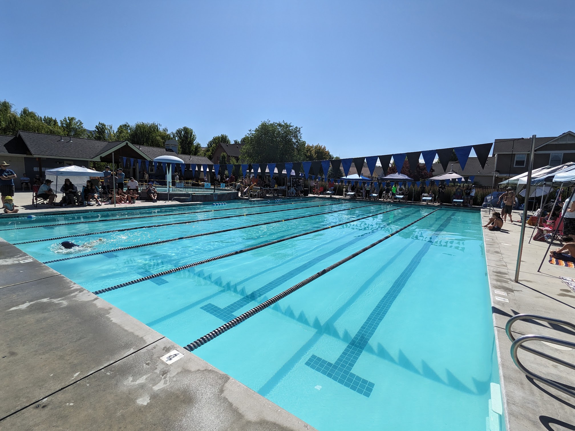 What are people saying (AI review summary)? The venue is well-suited for swim meets, featuring a nice pool and a spacious outdoor patio that can accommodate pop-up tents.