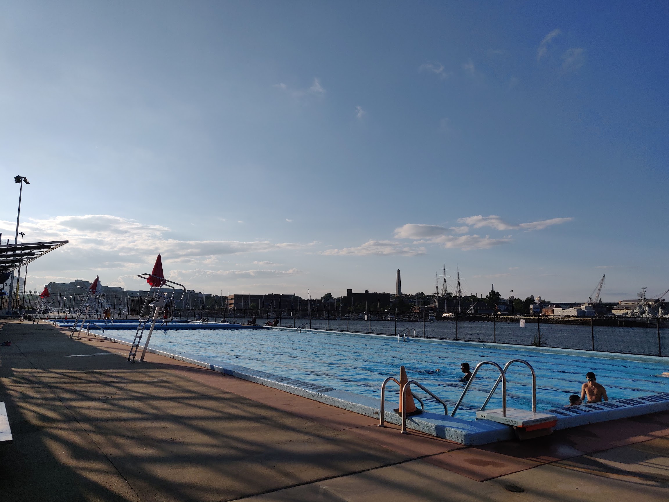 Nice and clean pools. Water could be a little bit warmer to my liking. They have plenty of shades on one side swimming pools. Larger pool was 4-5 feet deep and smaller one 8 feet. They are having aqua aerobics once a week. Did I mention the views? Omg the view from there is amazing. Charlestown feels like you can touch it with your hand. The boats…